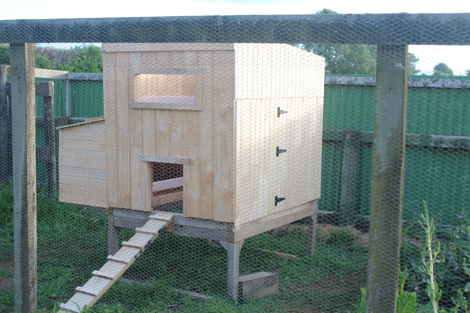Wow - that is a nice and fast build. What method did you use to secure from digging predators? Buried wire? Wire skirting around the pen? Cinder blocks or paver stones around the perimeter?