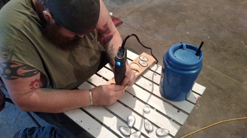 We wanted to make the door heavier so my son went to work carving this piece that holds 8 five ounce sinkers from my tackle box :