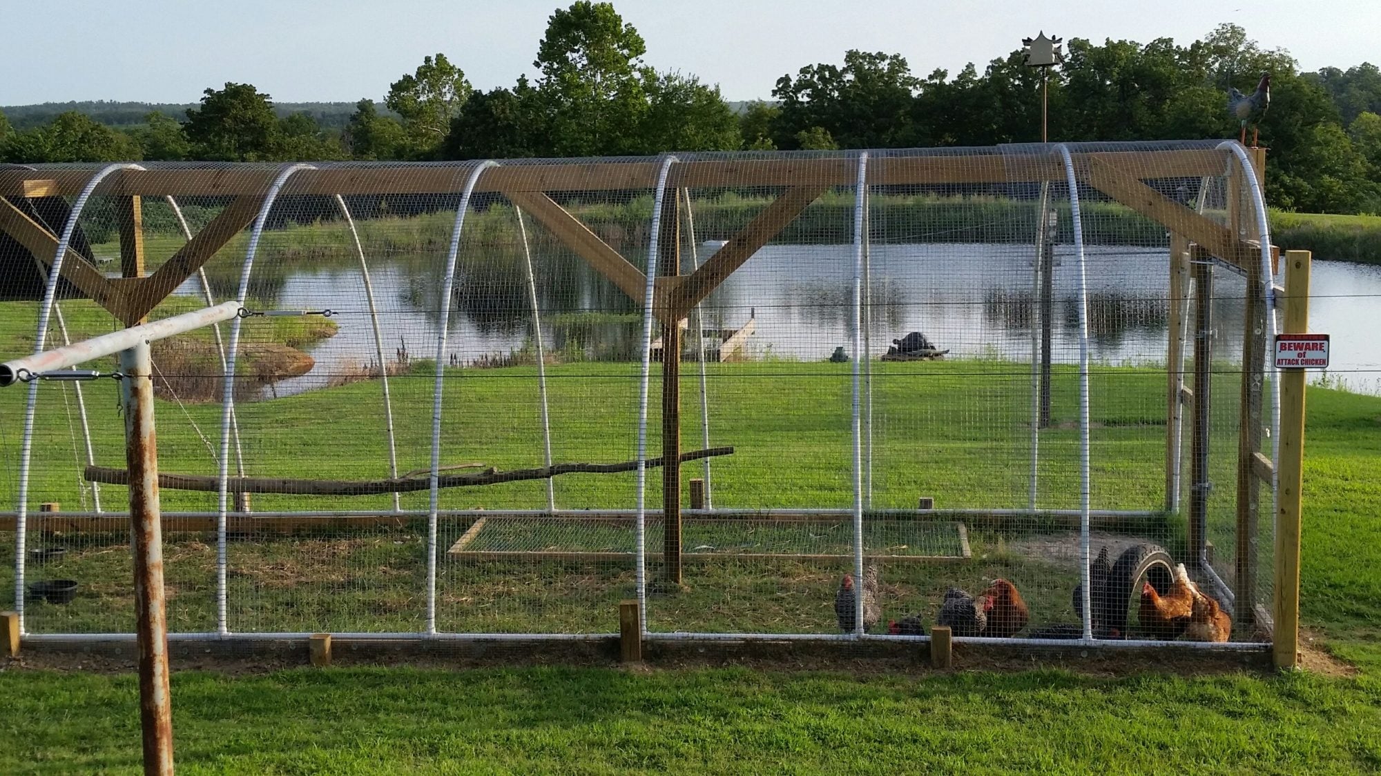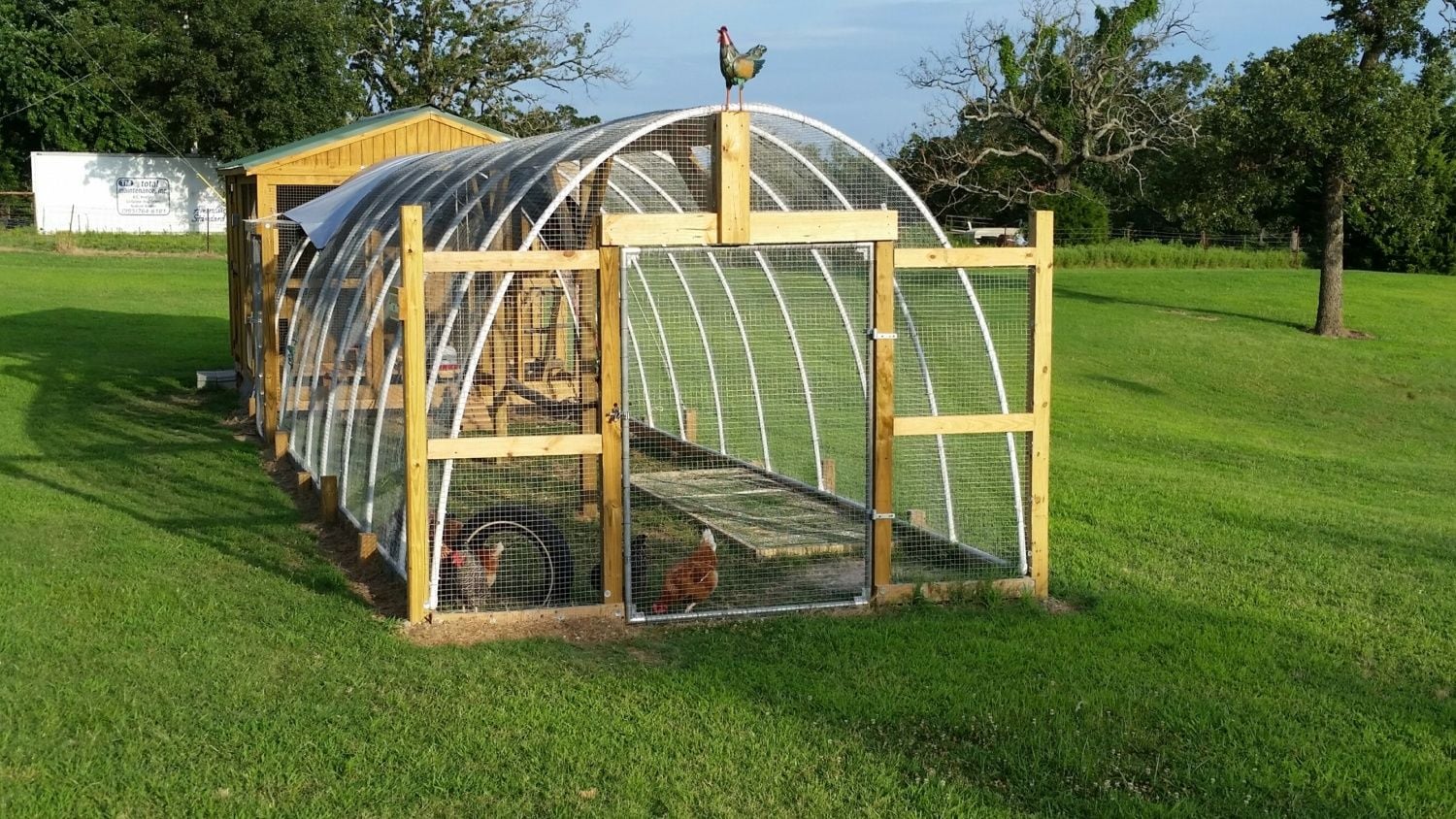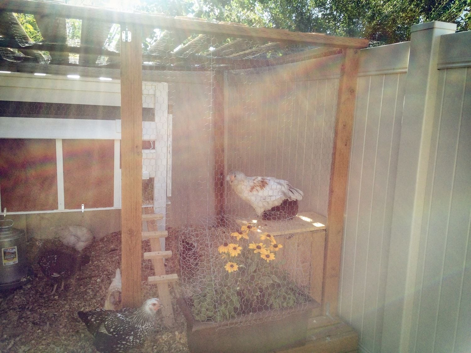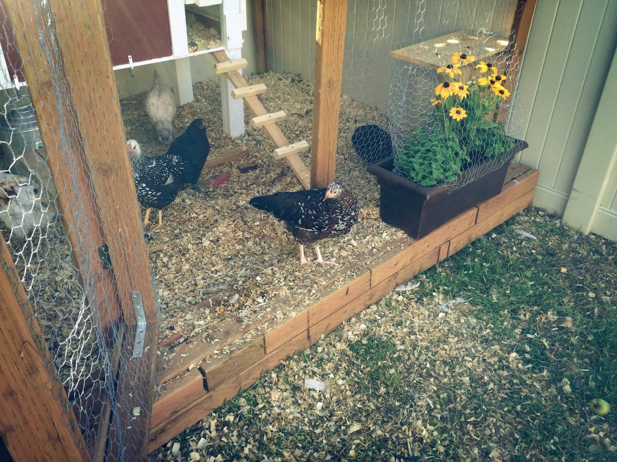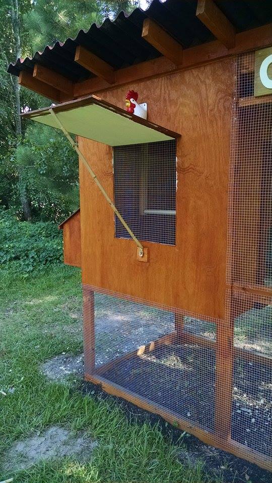 Still need do the wood shingle siding and create a tunnel for them to reach the run but they are secure for the moment. Also need to add a operable vent. Note salvaged weather vane and Andersons windows. My daughter is holding a cross between Chinese silky and polish not your average breed but
