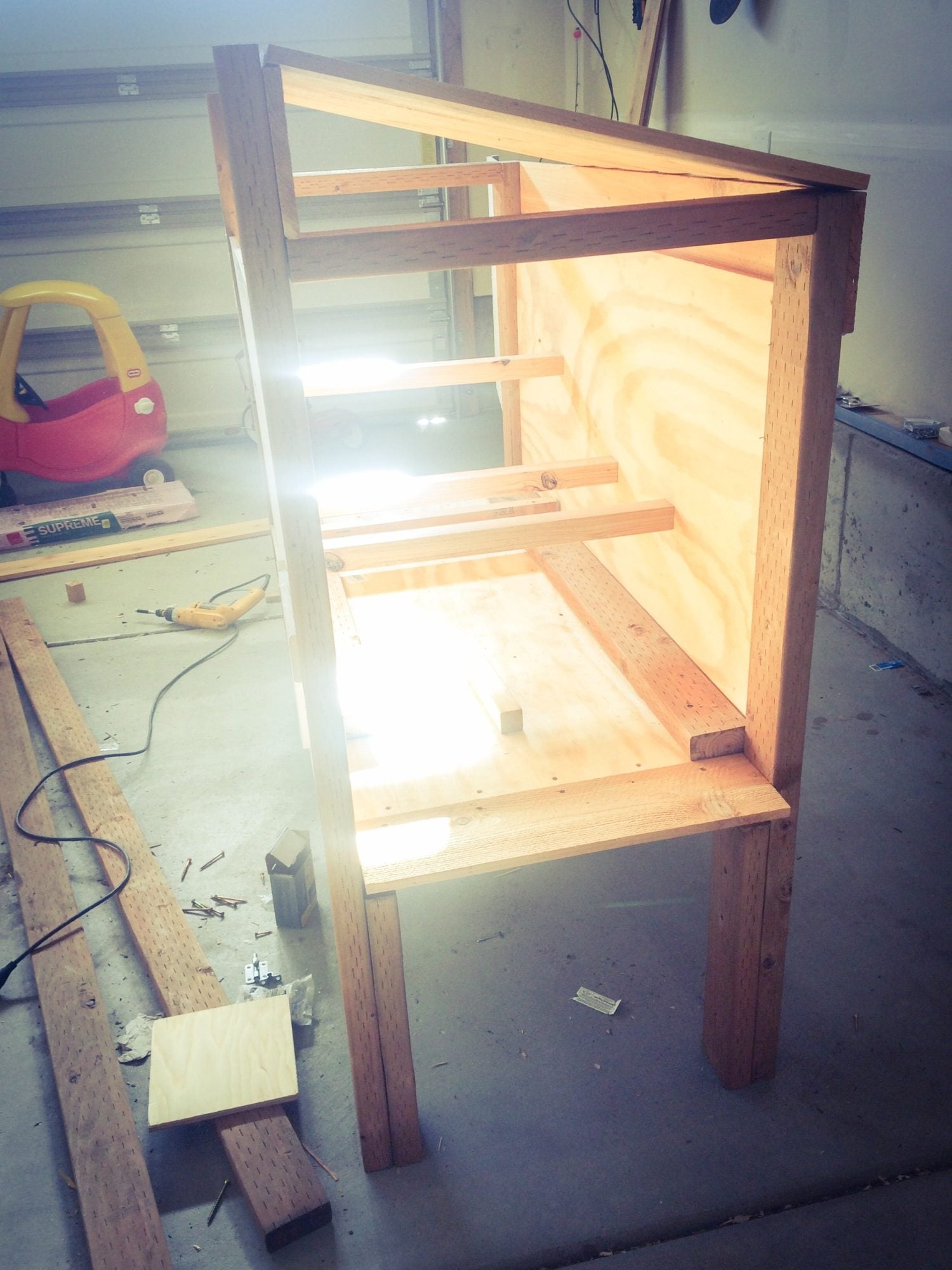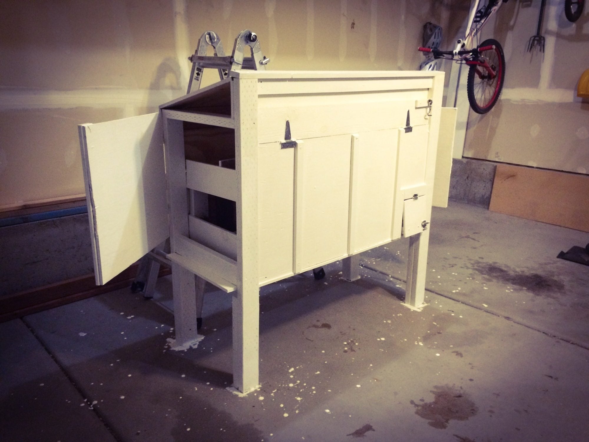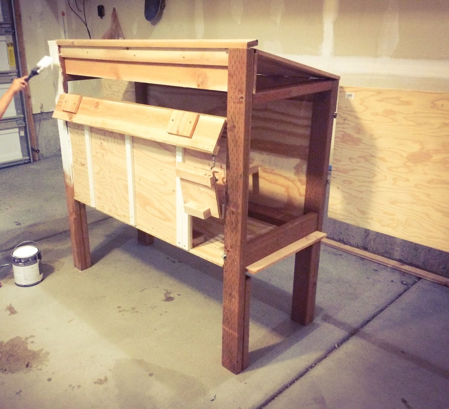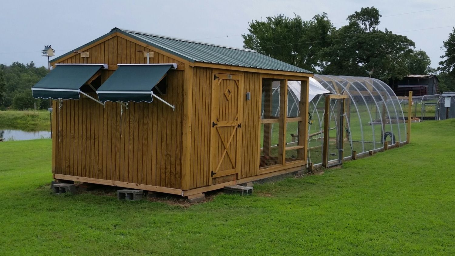 Still need do the wood shingle siding and create a tunnel for them to reach the run but they are secure for the moment. Also need to add a operable vent. Note salvaged weather vane and Andersons windows. My daughter is holding a cross between Chinese silky and polish not your average breed but