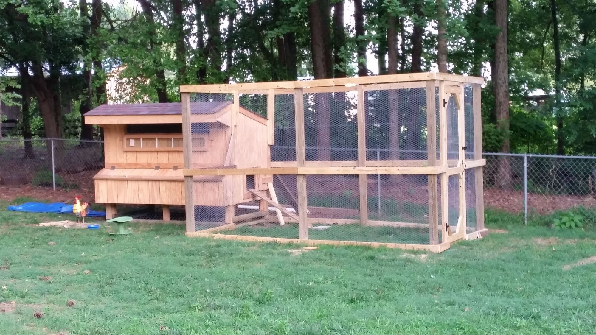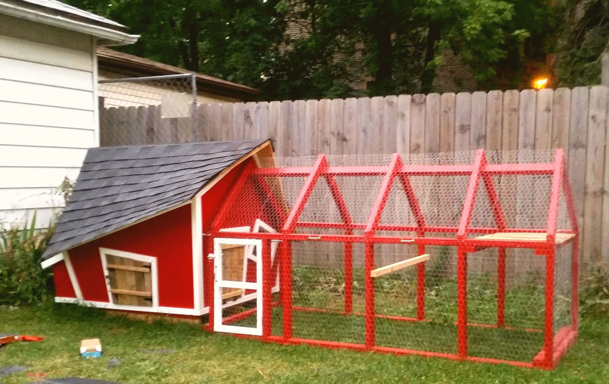 Mine was a prefab, 5x8, and I put the run together myself, 8x12. I've never done any wood work like this before and there's still some work to be done. I'll be adding hardware cloth soon over top the chicken wire, but the hens get locked up at night so they are safe. When we get the chain link fence extended in the future I'll be adding to the run behind the coop. Inside picture just showing the paint before putting the gang in. I had the nest boxes painted a dark brown cause I read the girls like their nest area dark. Thanks for looking!
