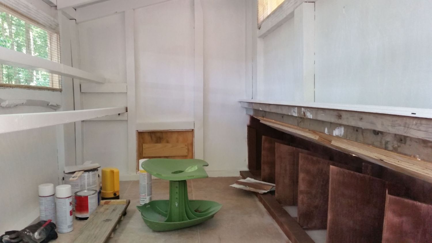 That is a very good prefab coop! Reminds me of some of the high priced Amish built board and batten ones I've seen. They are nice, but rather expensive! Since you're going to take out the upper roost, you might also consider replacing the one that's going to stay with a 2x4 on the flat (4" side up) as it will be much easier on the birds feet. I would also consider running a 2x4 or 1x4 or even a 1x6 on edge along the foot of the nest boxes to keep them from scratching the litter into them. I'm sure your birds will be quite comfy in there! there's a real decent amount of ventilation as well (not common on prefabs). Nice work on the run as well!Mine was a prefab, 5x8, and I put the run together myself, 8x12. I've never done any wood work like this before and there's still some work to be done. I'll be adding hardware cloth soon over top the chicken wire, but the hens get locked up at night so they are safe. When we get the chain link fence extended in the future I'll be adding to the run behind the coop. Inside picture just showing the paint before putting the gang in. I had the nest boxes painted a dark brown cause I read the girls like their nest area dark. Thanks for looking!