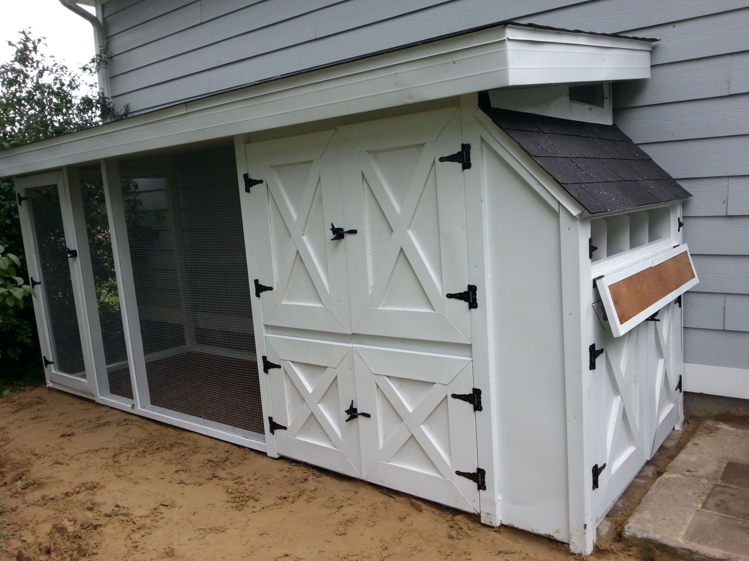 The coop is beautiful and looks well thought out. I like the way the overhang extends over the nest boxes; that should help prevent leaks.