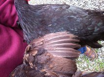 Thanks for posting the photo's. I had wondered what a chocolate dun to a chocolate recessive would produce. I prefer them dark, maybe not so dark you can't tell them from black but I do prefer a dark chocolate color. The rooster seems to have green sheen in his tail feathers, wouldn't that indicate black?