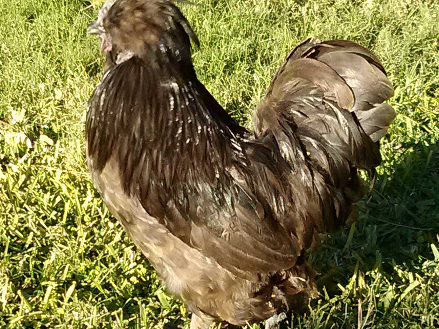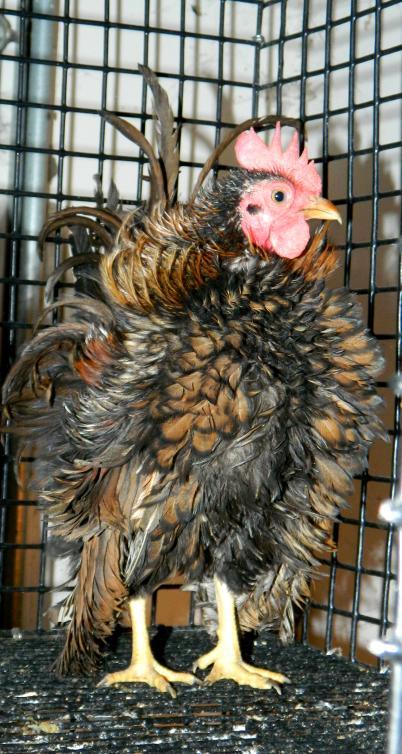 I lost this cockerel this fall, frizzles are very sensitive to cold and draft. He proved himself chocolate by producing chocolate pullets with my chocolate hens but look at the red leakage. He is chocolate laced red and proven by breeding to have been chocolate.