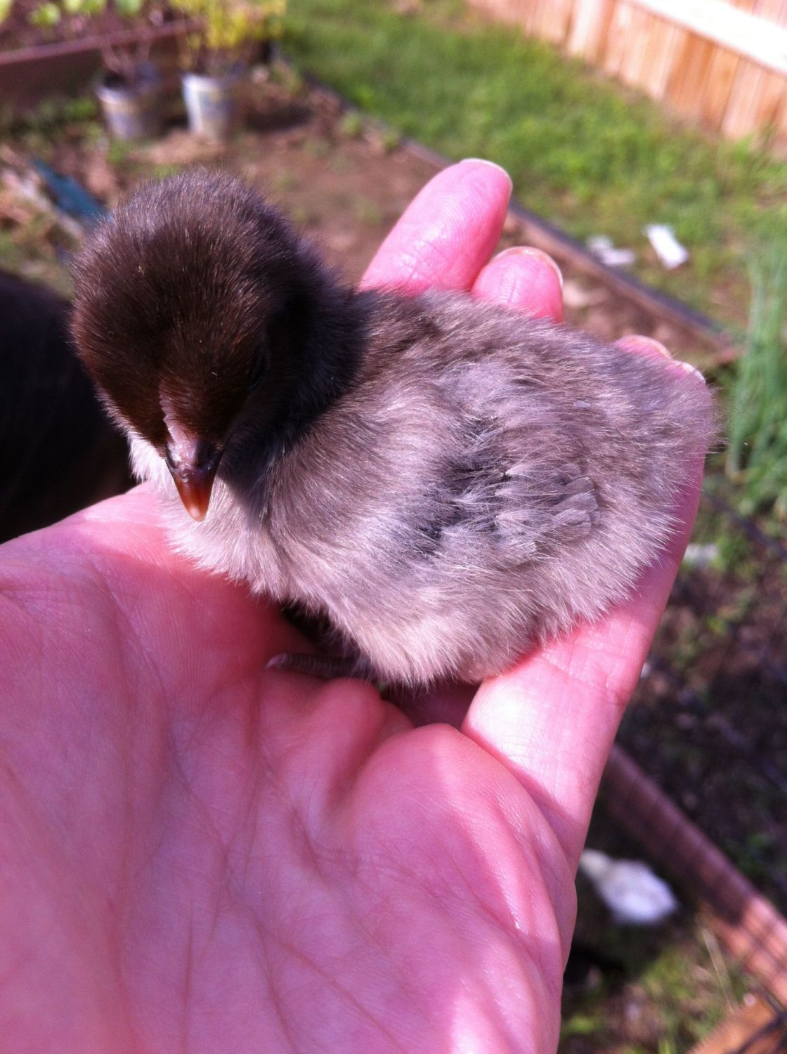 I hope it is O.K. to post this here. I picked up this bantam chick yesterday at Atwoods; they get their chicks from Ideal. The coloring on its head is a cool brown that lightens towards its back, and its belly is grey. Is it a part of the dun family?![]()