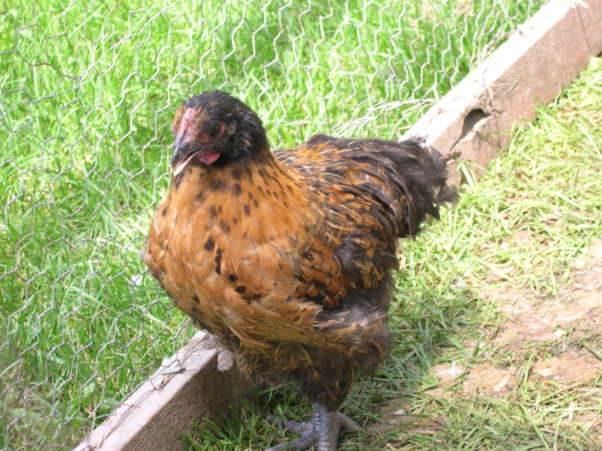 This photo the chick is next to a black Australorp.