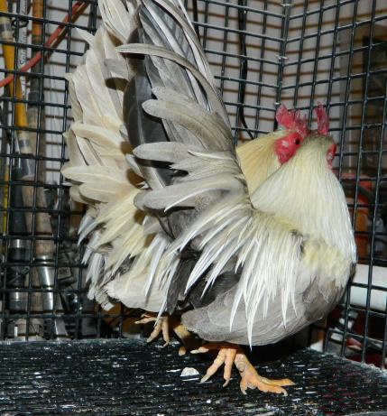I thought I'd bump this thread a bit and hoping there will be a few others adding some new photo's here as well. Here are a couple of young Serama cockerels that I bought today. I don't know if they are dun or what they are but hope that breeding them to some black hens, the genes will show themselves. I've also read that blue plus chocolate can dilute them more than either of those genes do individually so they may be chocolate/blues. Either way I really like the color. I have some very chesty black hens with short backs that should pair up nicely with these 2. I have no information about the parents to either of these, they came from the same flock but they could be related or not. I did not see any in the flock that looked chocolate or dun, most were either near white, with a lot of yellow in the hackles are really dark, blacks and wheaten looking or BBR colors. There weren't any hens that really stood out that looked dun or chocolate either but you know how Serama's colors can be. Here they are, very poor photo's because these boys were terrified. They had been raised outside all winter in a large coop and never handled.