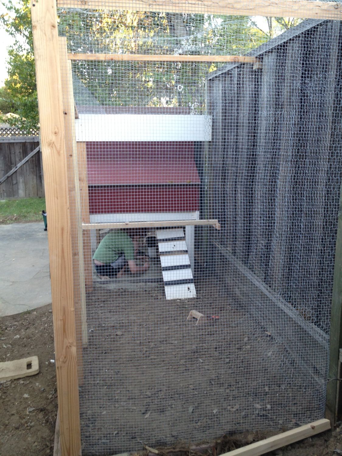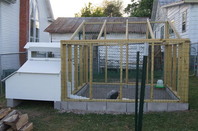 I fenced off a side yard for my 2 chickens & they have this 4x8 coop I lock them in at night.