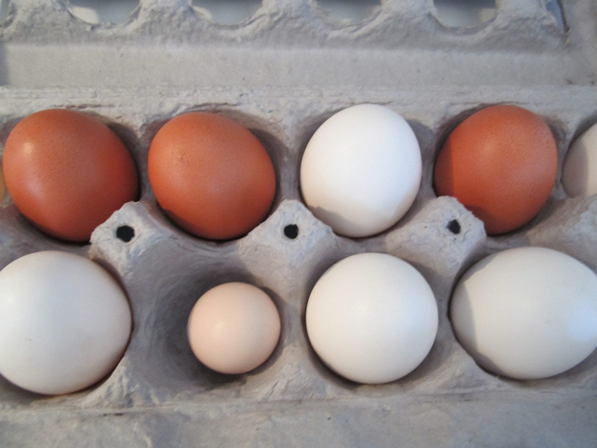My question is do you think it's the Reds for sure who are laying? I have gotten an egg a day since the 30th of July. Do you think the two that are the same size with the identical wrinkled ends are from the same chicken? (Those are the first two eggs.) That would mean she was laying her first two eggs less than 24 hours apart. Would the third egg definitely have been from the other 21 week old because it was a different size?