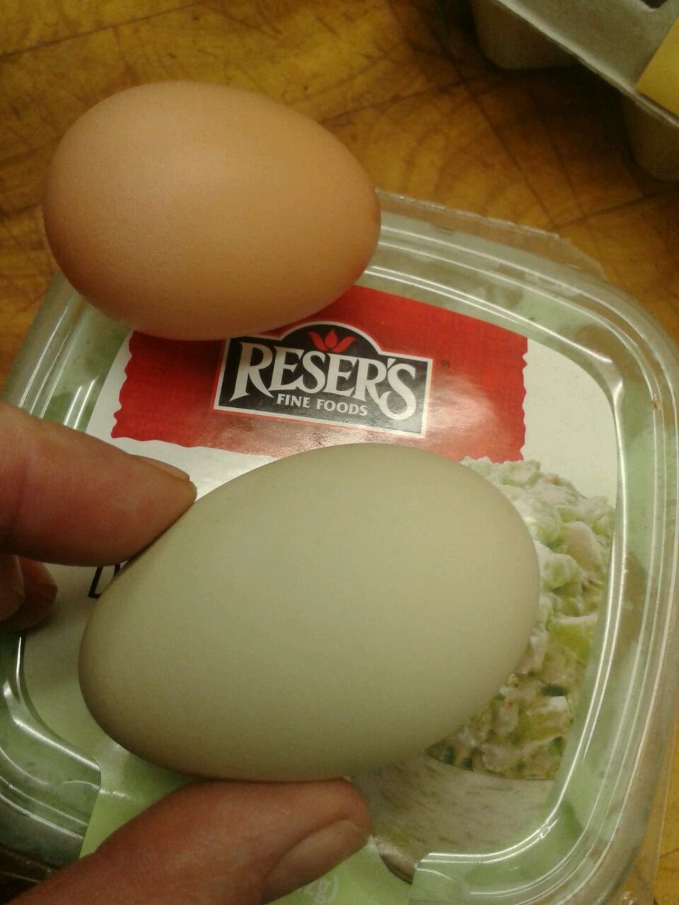 Aug 7, 2012 #3,780 bluemusefarm In the Brooder 7 Years Joined Jan 26, 2012 Messages 38 Reaction score 3 Points 41 Location Minnesota Same breed (RIR), same day, first eggs for both of them. Unbelievable.