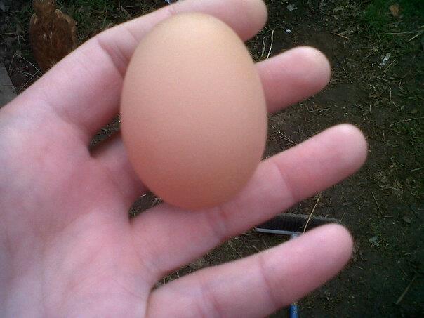 This is a picture of our very first egg one of our ladies layed for us! Was a very exciting moment for our 5yr old daughter