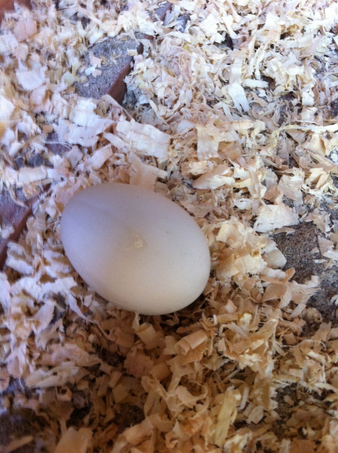 My EE/Polish crosses first egg yesterday! Got another one today, slightly larger, slightly more pink. Not sure which girl is laying it yet. I found it right next to their food both days, not in either of the very comfortable nesting boxes I have provided them lol