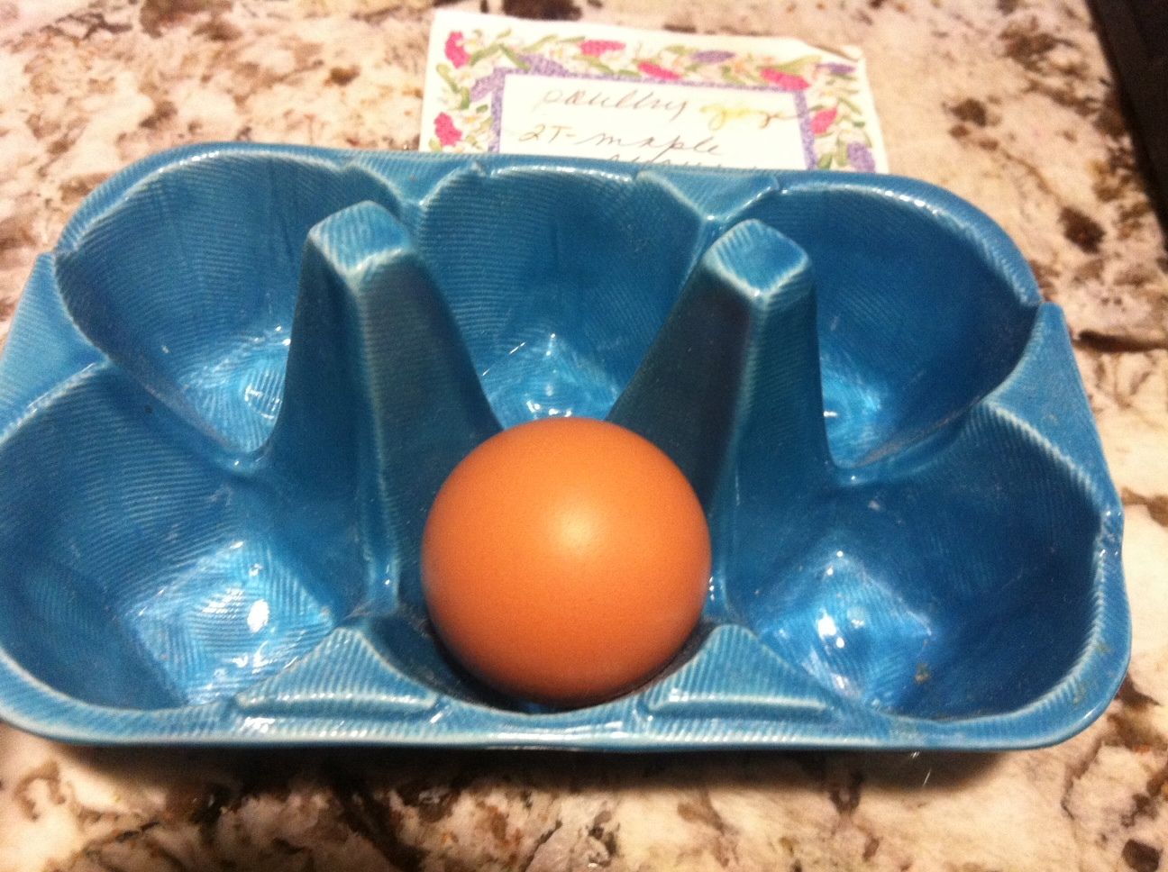 I know that's a whole lot of excitement over one small egg, but we've had a couple of months of no eggs at all, so it's really nice to finally have a hen start laying.