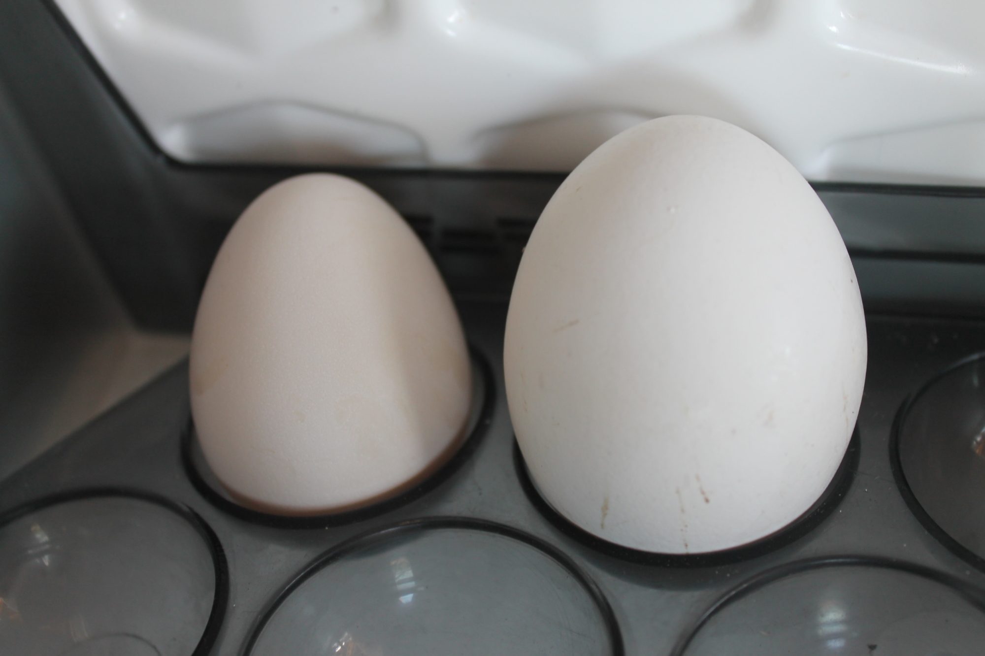 (Those are two extra jumbo Rhode Island Red eggs from the same nest box).