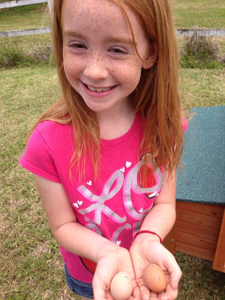 . We have only had our chickens for a week and a half and elphaba has already laid four eggs this was her firat one on Anzac day :)