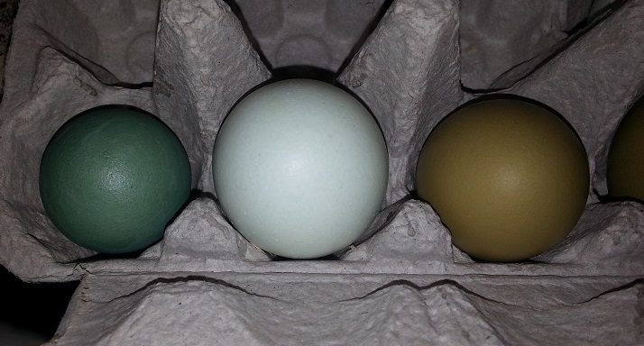 Next to Wheaten Ameraucana and Olive Egger eggs.