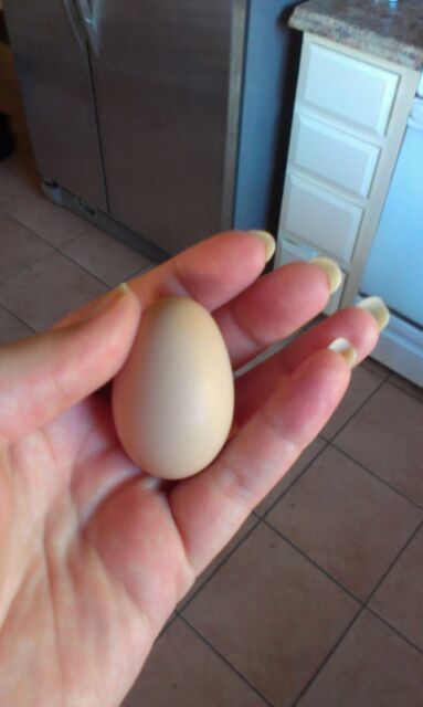 Then we got a regular egg today and we think it was from our 2nd layer. So, counting the defective egg, we are getting an egg per day from our rescue girls! Hopefully they'll all be laying soon, if not we'll have to get a couple pullets to add to our flock since eggs are kinda the whole point for us lol!