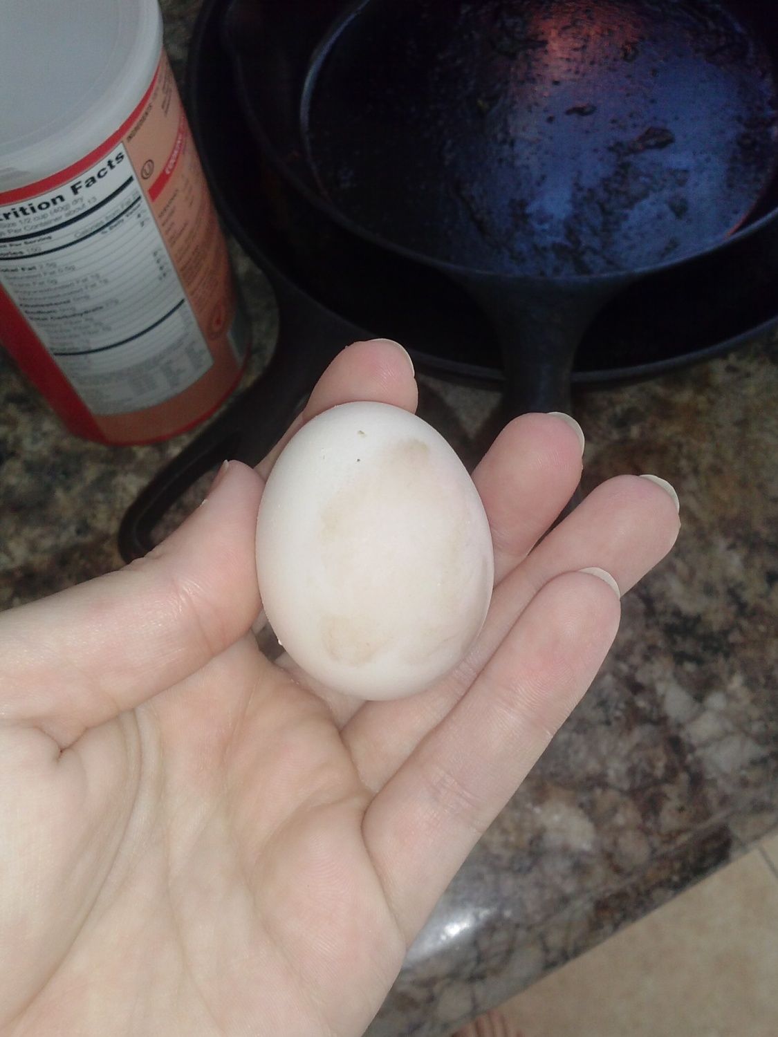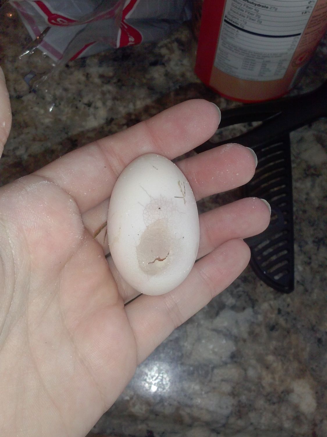 Does that one have a crack? One of my chickens layed her first egg with just a rubbery lining, no shell.