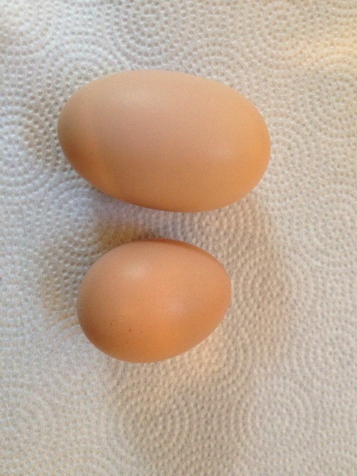 Got our first mini eggs out of one of our Easter Eggers and a Gold Laced Wyandotte. Whooohooo! The one in the middle is from our 1.5 year old Orpington and is for size scale.