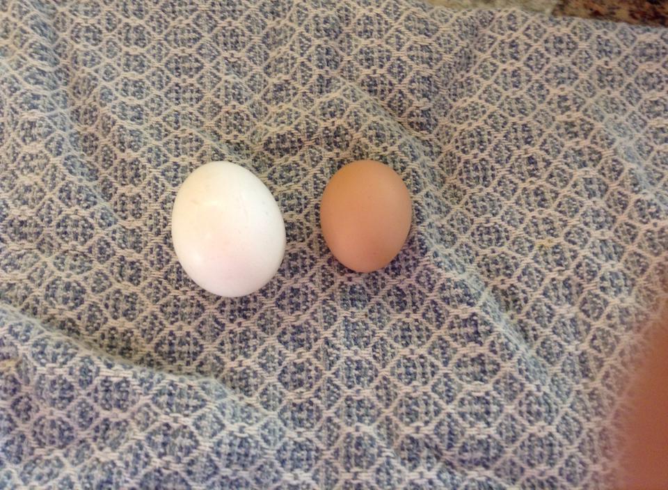 The white egg is a store bought large size for comparison.