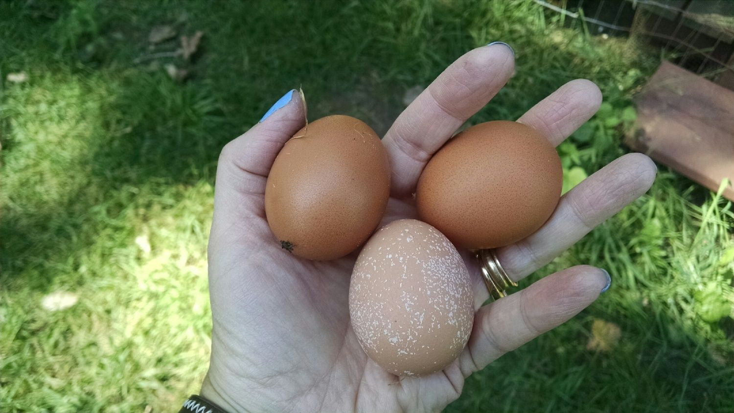 How old are your girls?We got our first egg from our silkie a little over a week ago. Her first egg was white and by her sixth and most recent egg she is producing a pretty pink shell. The look of joy on my husbands face when he brought me her first egg was so precious. He even will admit that he is surprised at how much he loves our girls.![]()