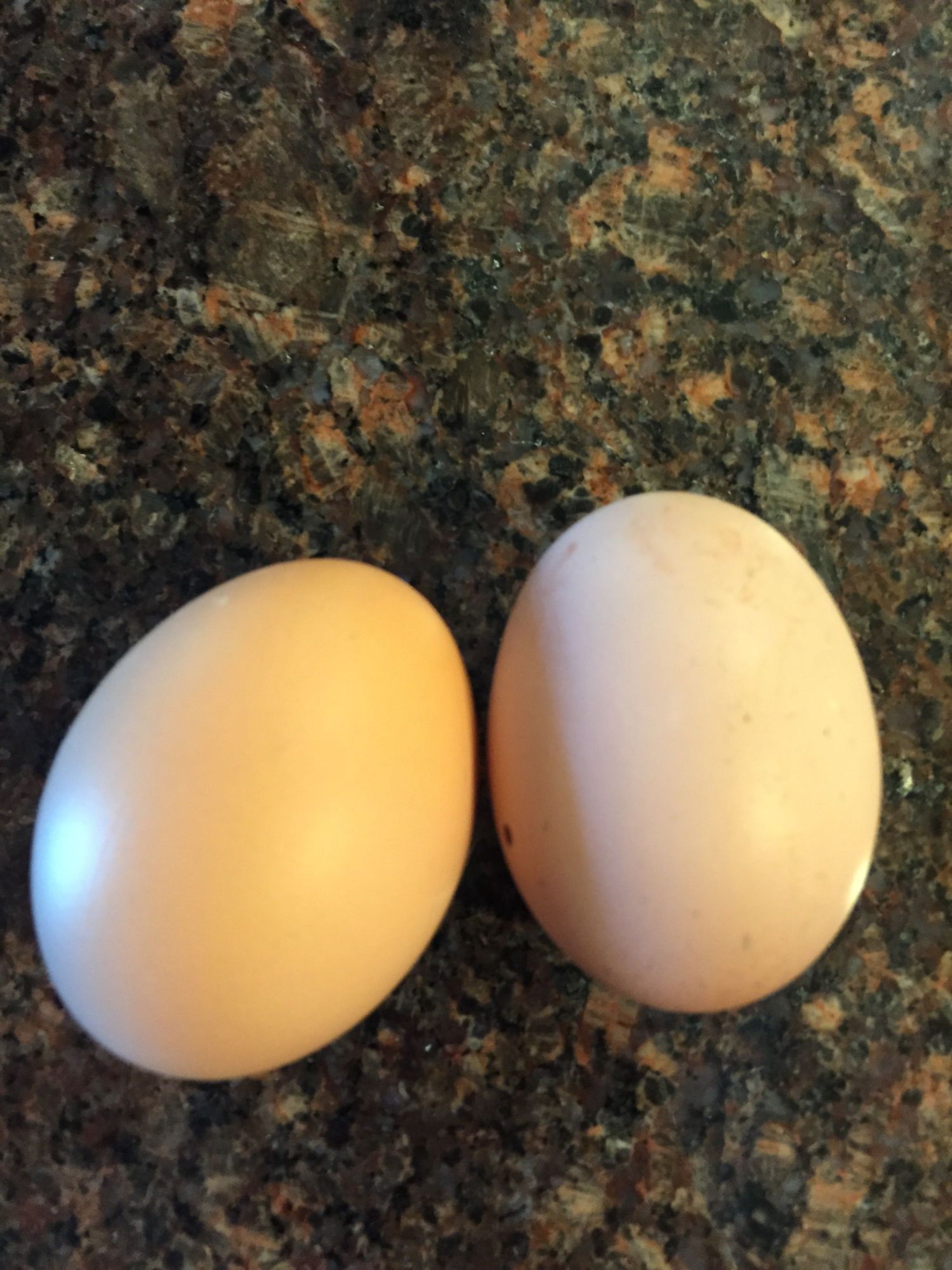 e First egg came at 19 weeks. This egg came at 21 weeks. Both RIRs. New egg is on the right