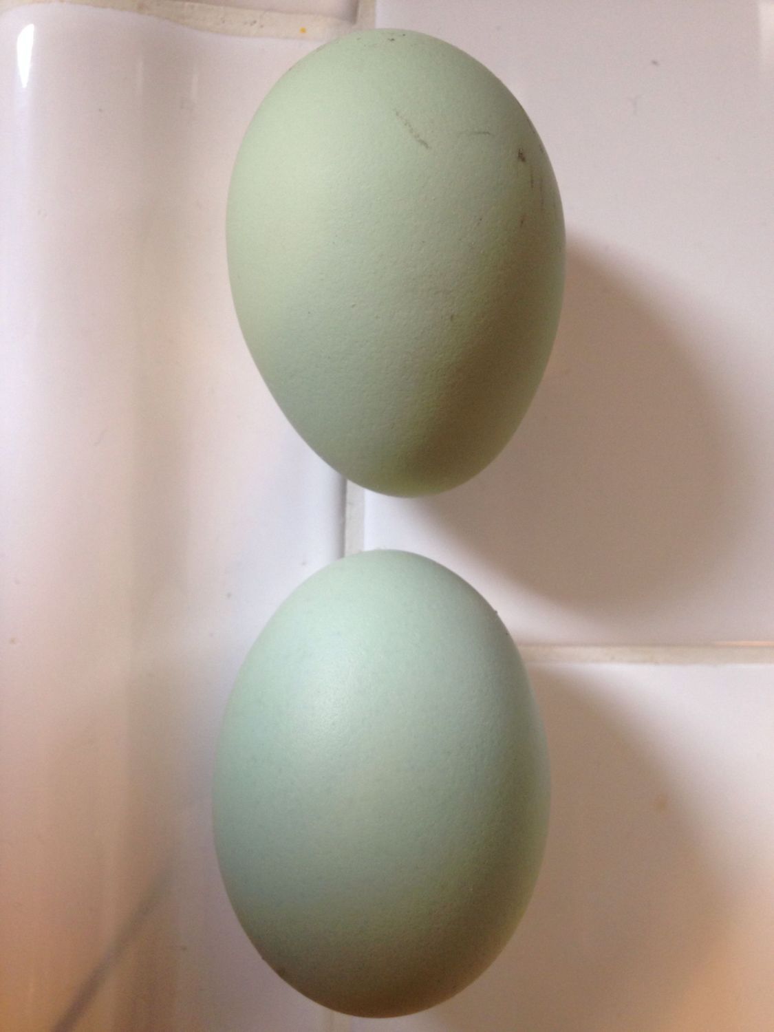 I bought 6 chicks (Adverised as Ameraucanas) last August. This is the first two eggs that were layed a couple days ago. Obviously NOT Ameraucanas. Was looking for those pretty colored blue eggs. Got these green ones. Anyone in agreement that I have Olive Eggers??