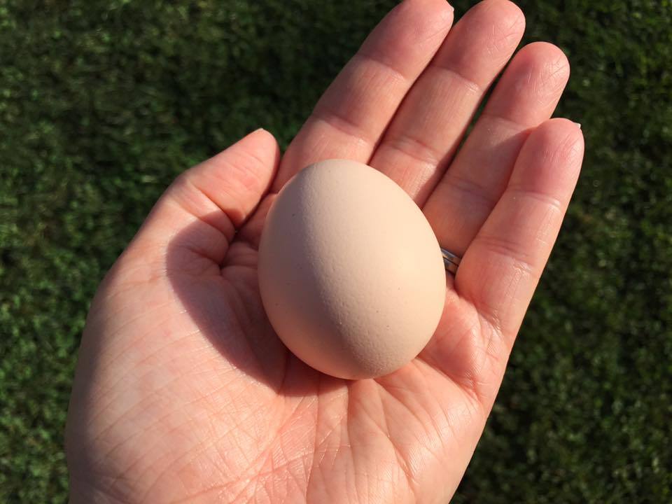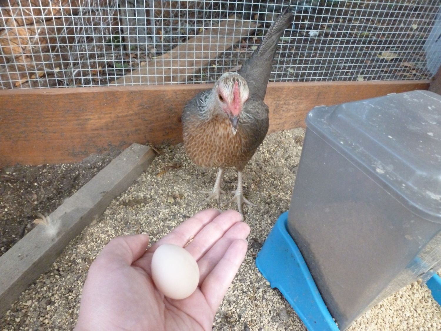 Woohoo!!! Just went out to close up the coop for the night and found our very first egg out in the run! From one of my four red ranger girls, 17 weeks old. :D