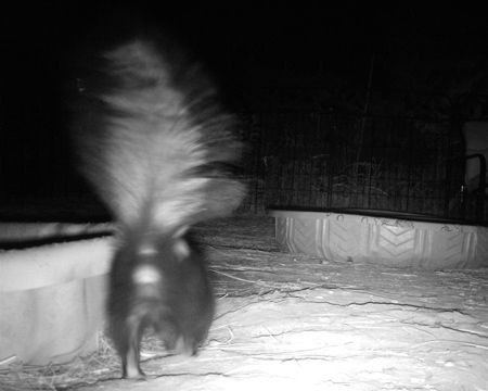 Last night I went outside and saw a skunk trying to dig into my chicken coop! Looked just like that too!