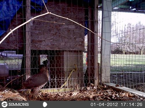 Don't mind the date on the camera, it was almost night and I was more concerned about catching what had killed my chickens than the date, but you can see he visited multiple times looking for a snack.