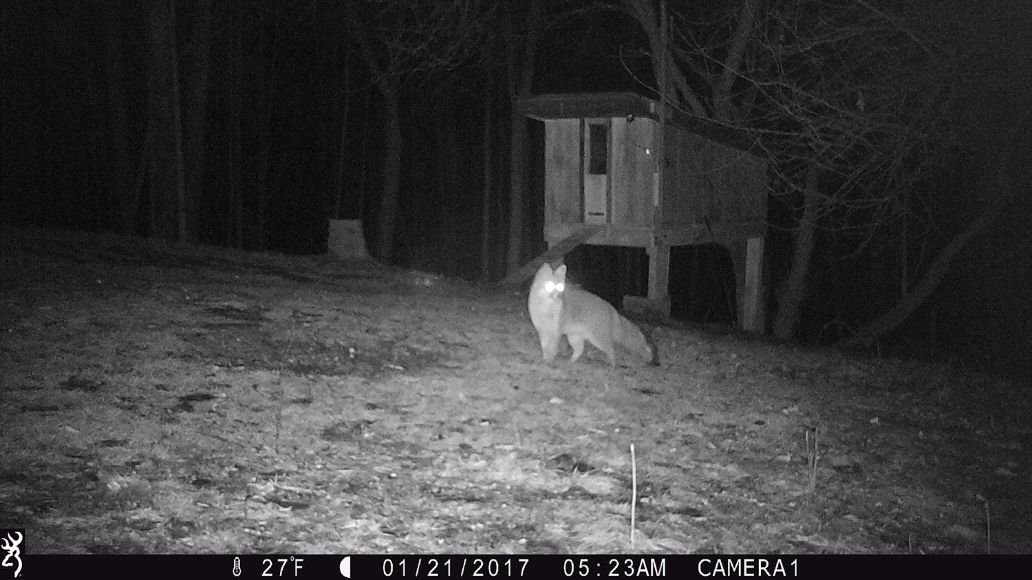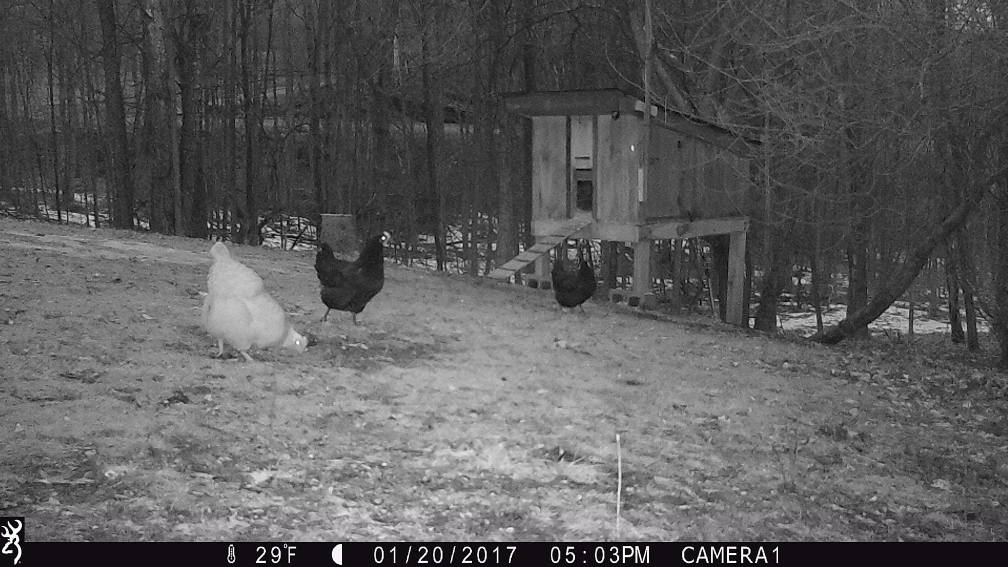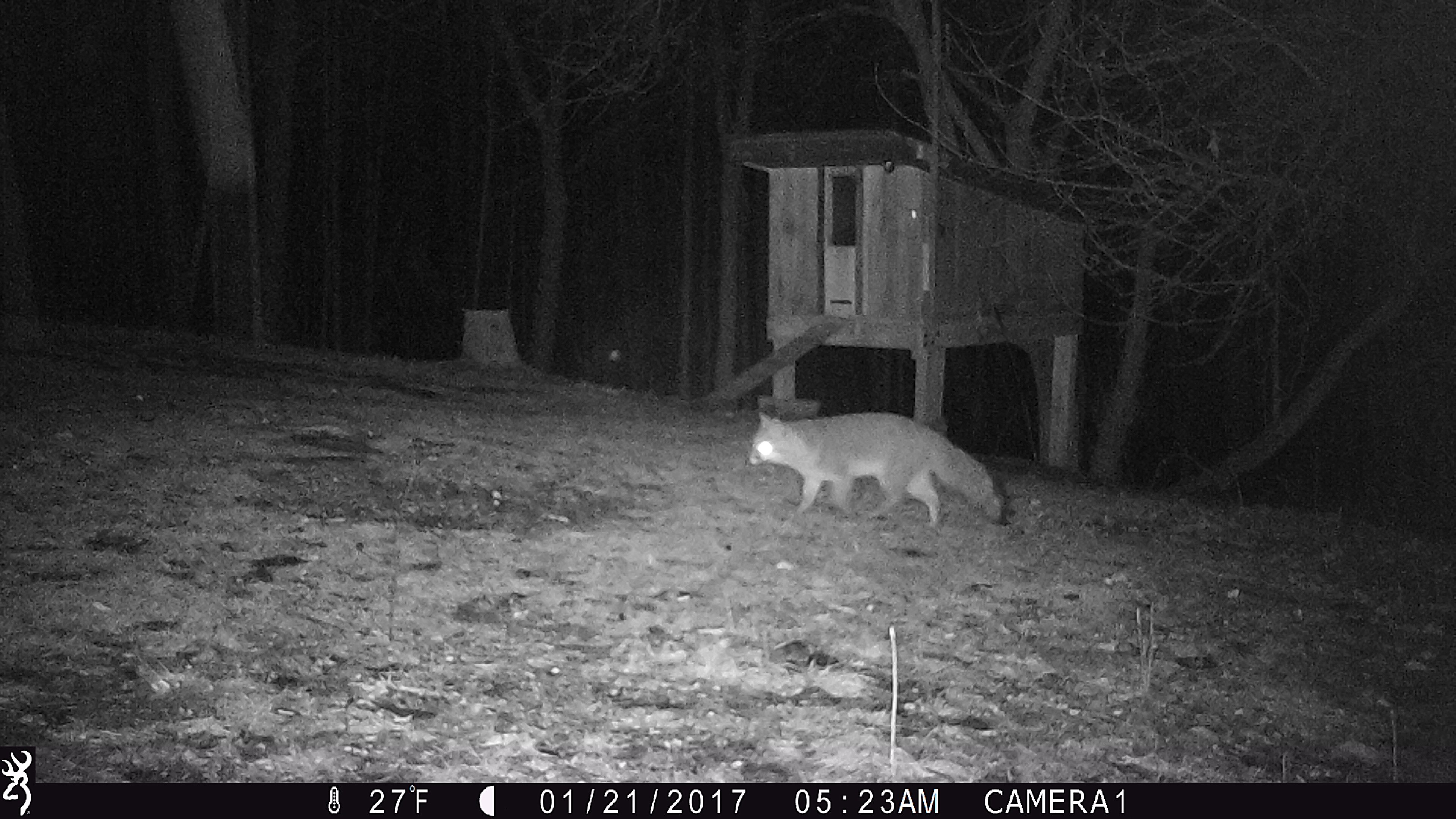 i finally caught the fox on camera.. i kept seeing fox prints in the snow.. the time makes me uncomfortable, as there are only 2 days a week when i have to leave the house by 6 a.m. and open the coop door then.. the fox doesn't seem too interested in the coop and i try to make sure no food is left outside to attract them..
