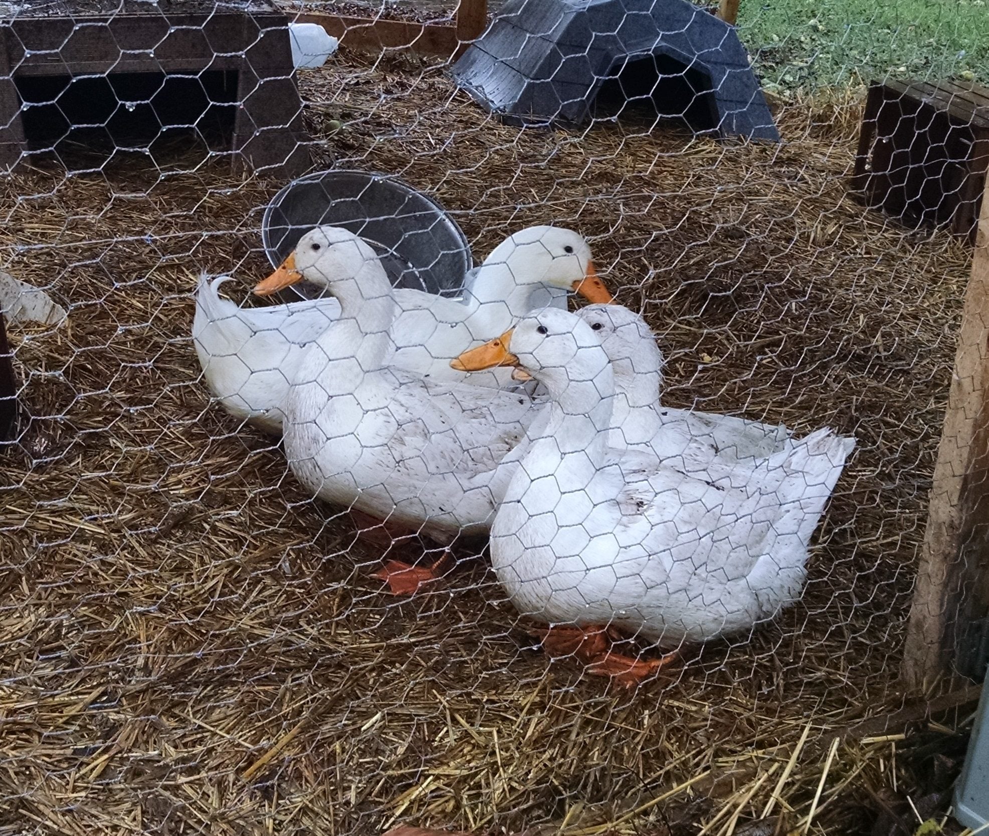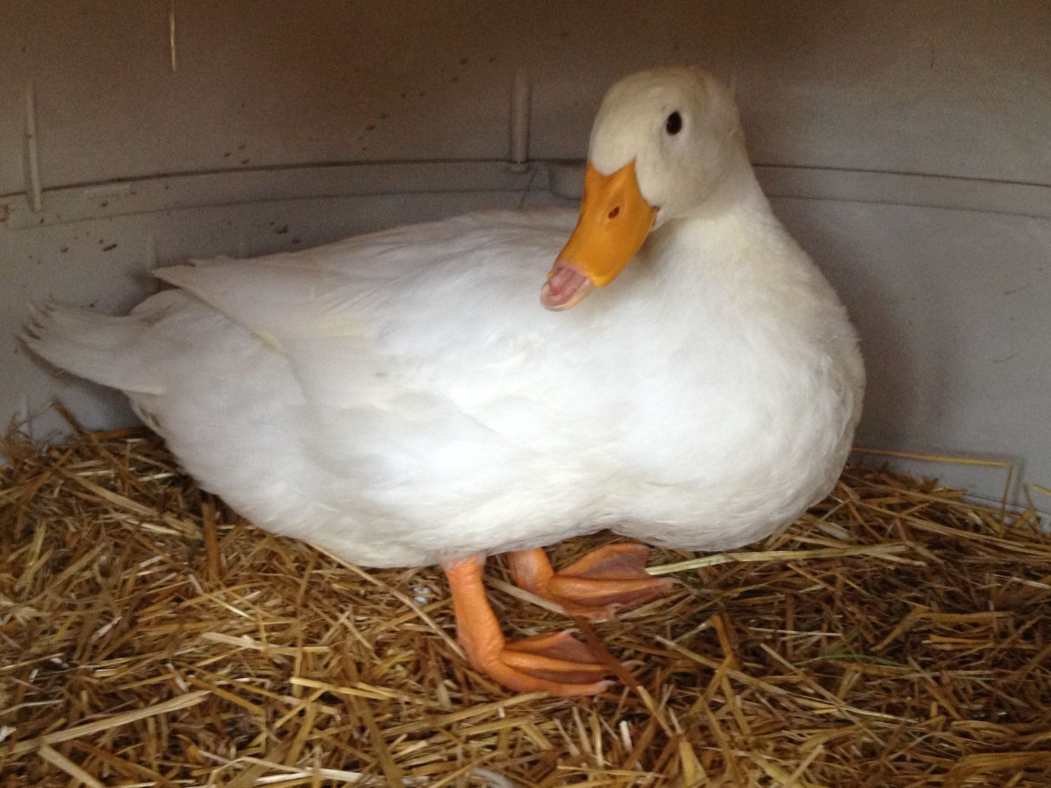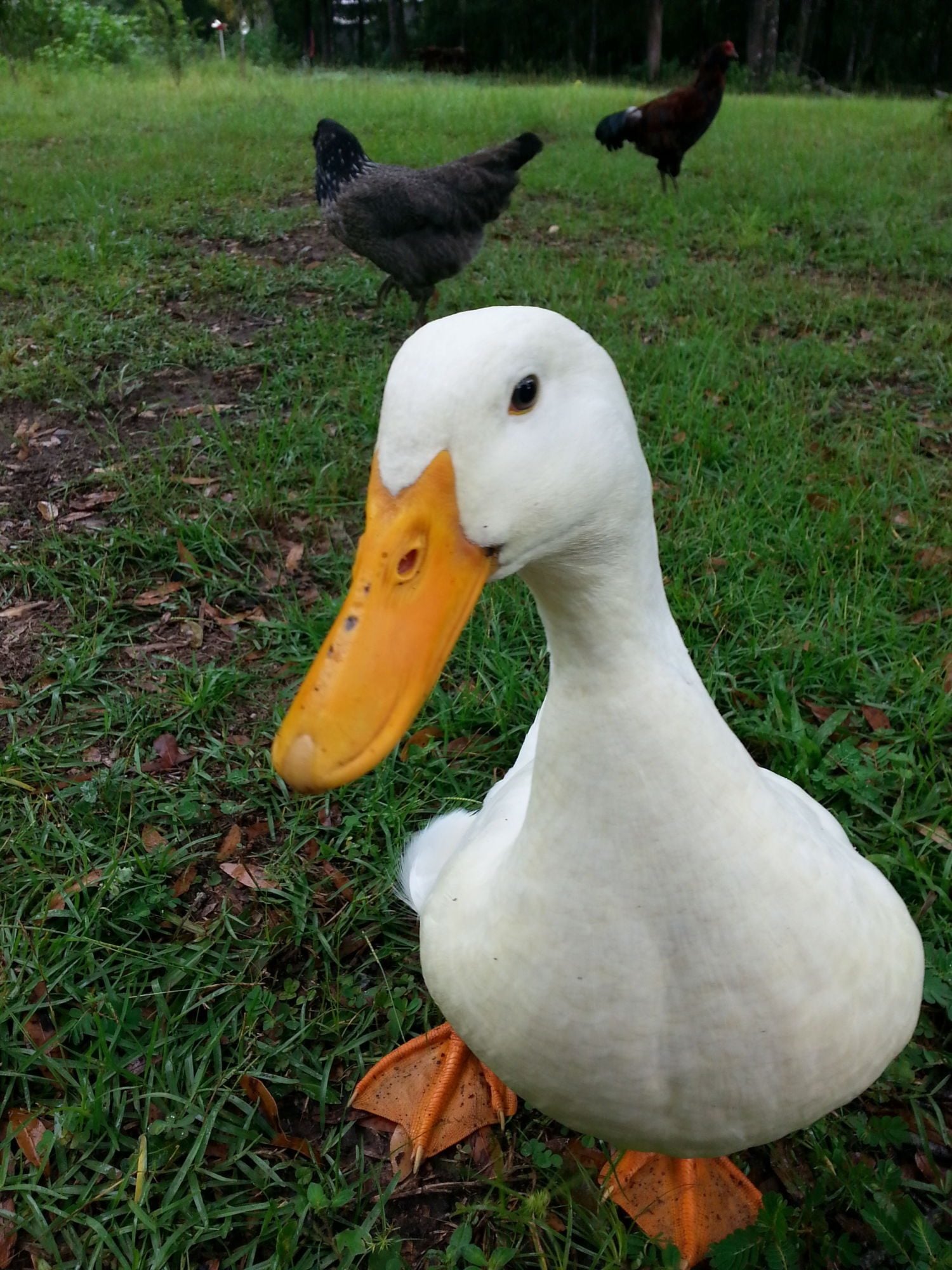 I have one pekin named Sunny. She is the lone survivor of a group of 6 ducklings that were attacked by a predator. She is missing part of her left wing and the tip of her bill, but is a strong resilient girl and the leader of a small flock of anconas.