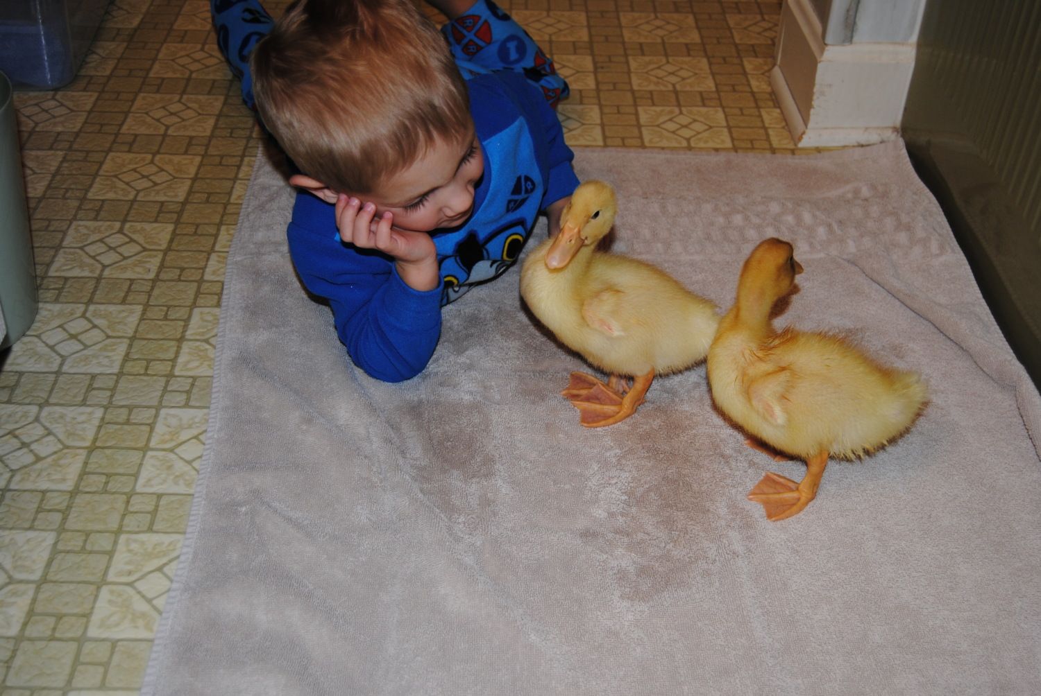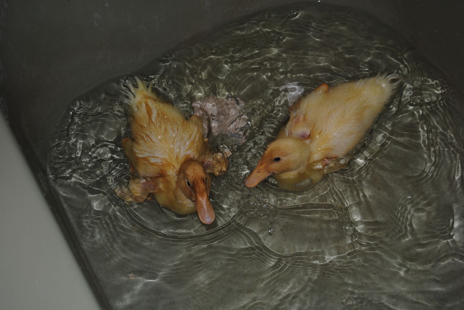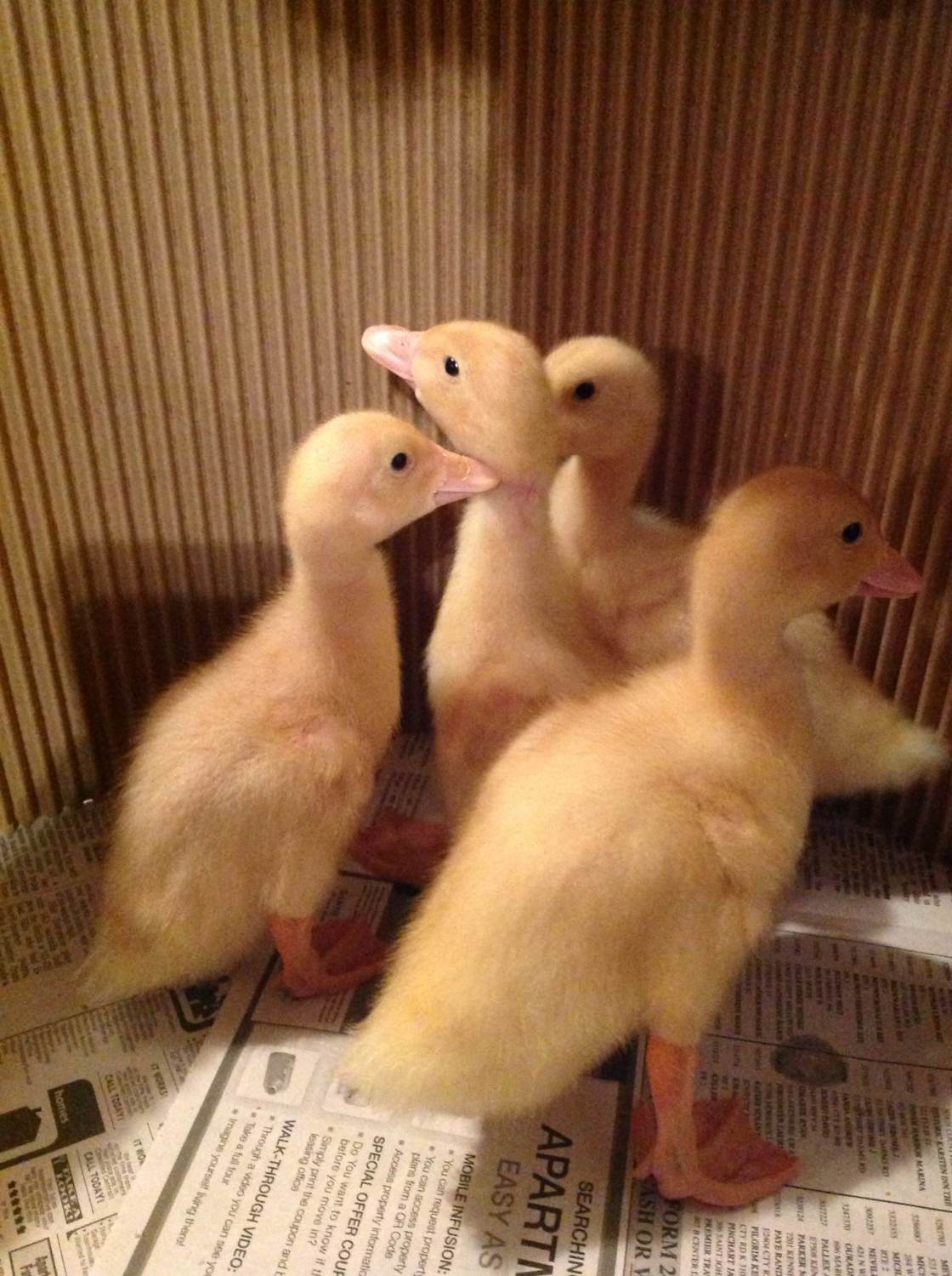 These are my 2 Pekins Quakers and Puddles... They are now I'm guessing a little over 2 weeks old. Ive had them for 2 weeks and I assume they were 2 or 3 days when I got them.