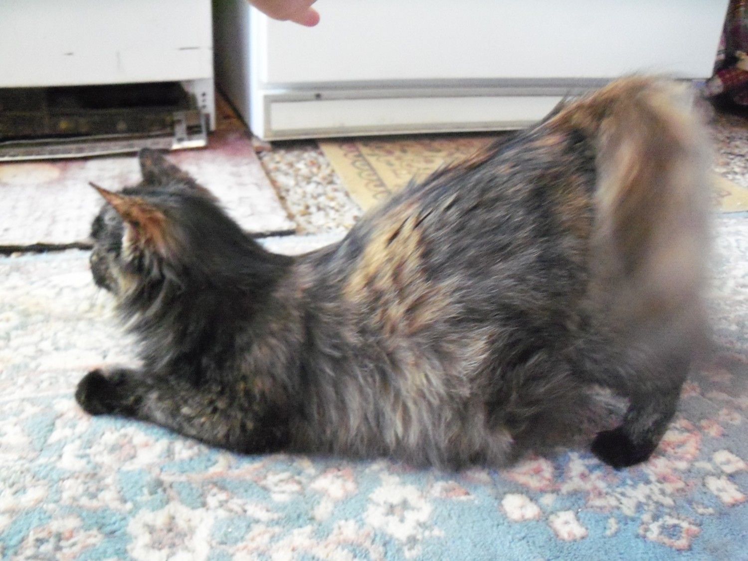 The best picture of her belly I could get. Neither she or the camera were being agreeable.