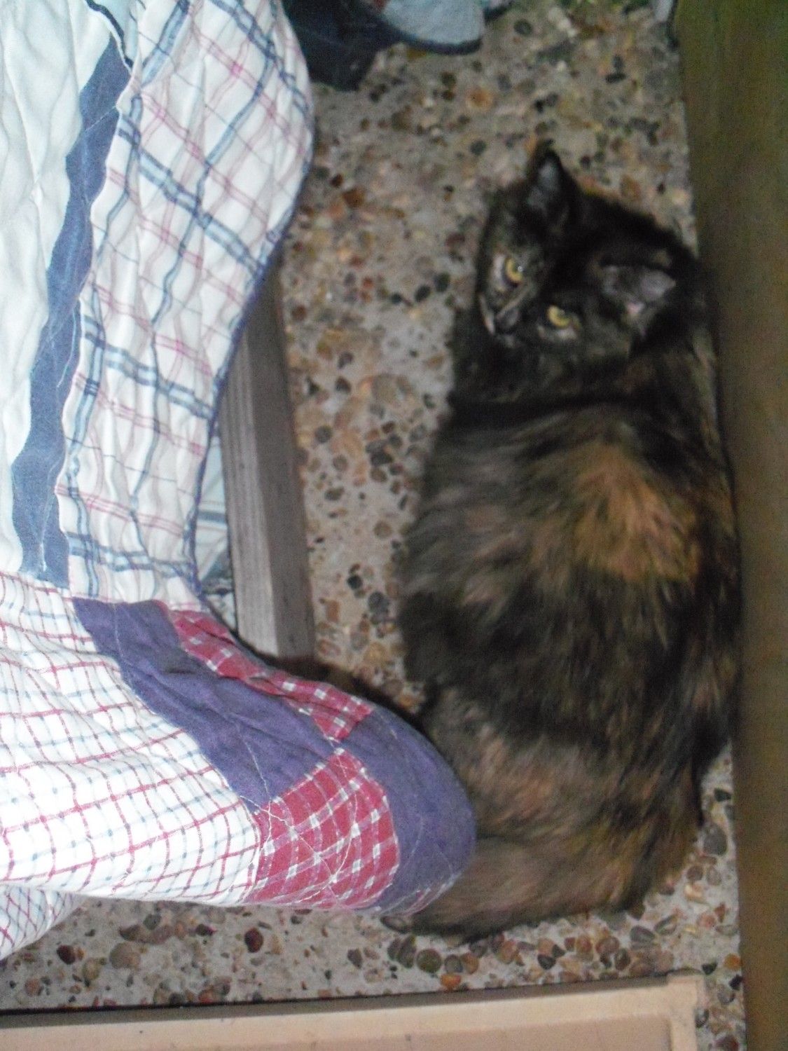 I'm trying to wait until she comes out to make any changes. I don't want to mess with her too much while she's back there. The problem is. She won't come out! You can kinda see the setup I rigged up last night in the third picture. The blanket next her is hanging over the table with the box underneath it. I can tell she's been inside it, but I haven't seen her inside it.