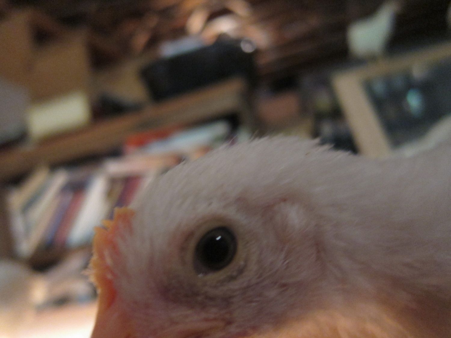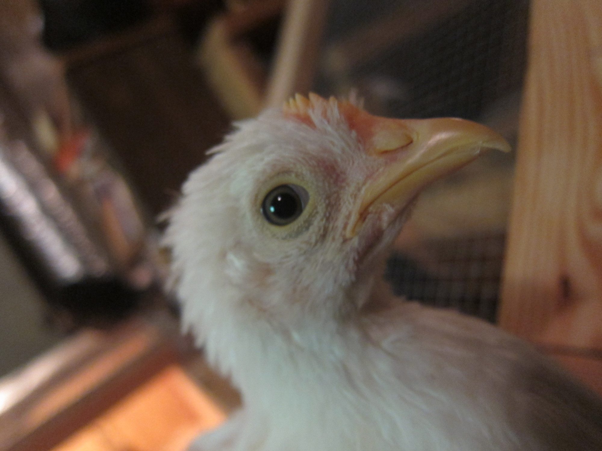 Other: %Breed: White Leghorn, she loves to fly all over the brooder and jump on my arms/shoulders.