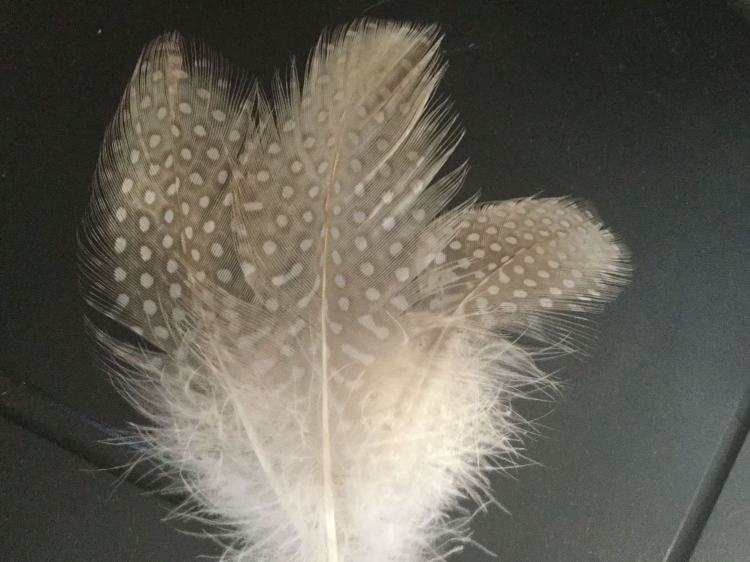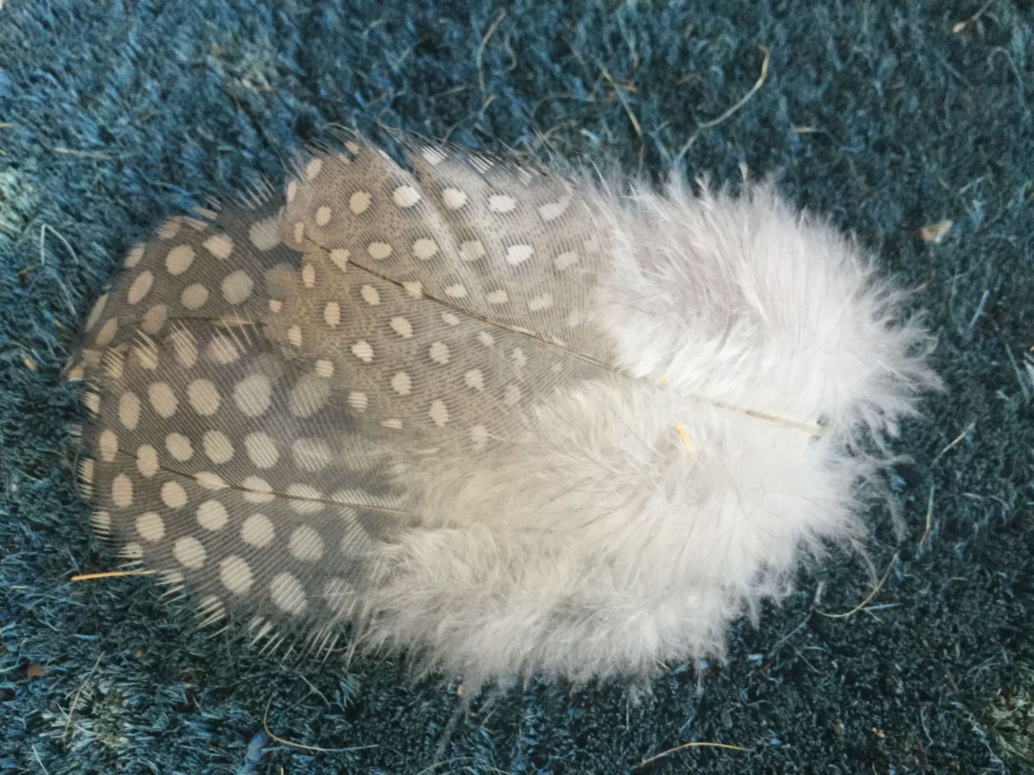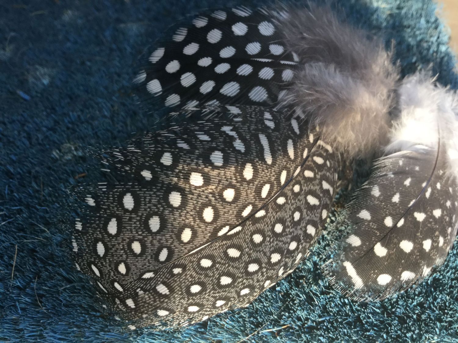 Guineas aren't necessarily the most beautiful birds, but I think their feathers are the prettiest. Here are a few feathers from my different colors of guineas: