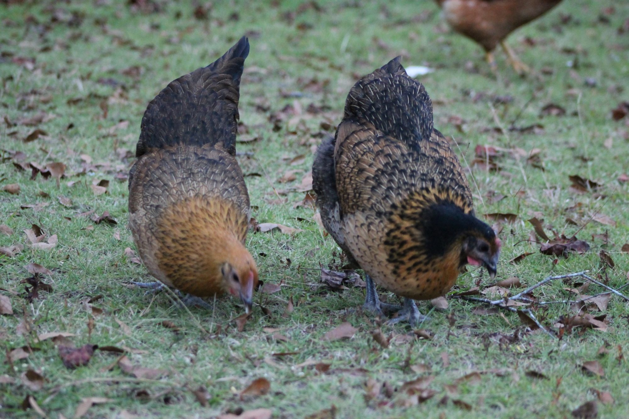 As of right now, we have a load of chickens down there, out of the eight the momma hatched we have 3 roos, and we recently lost a hen to our rooster, Rico, peckin her brains out (literally) so we had to rid of Rico. oh, and we lost another hen last week to old age, so I'll have to get down there and check how many are there. At this moment, Im not really sure.
