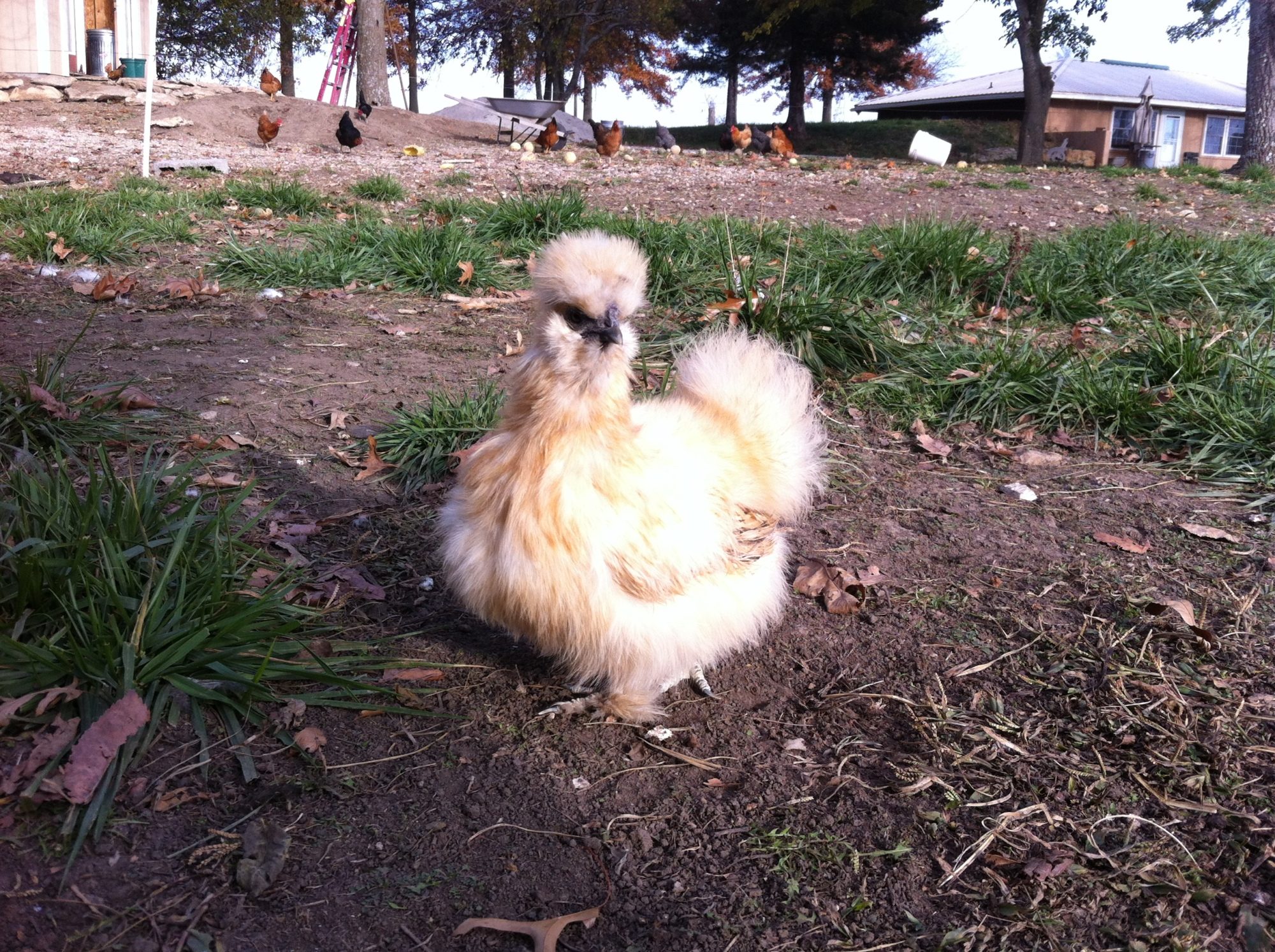 oh my gosh!! What breed of chikcen is that orange/black/speckled white on in the back?? I want one!!