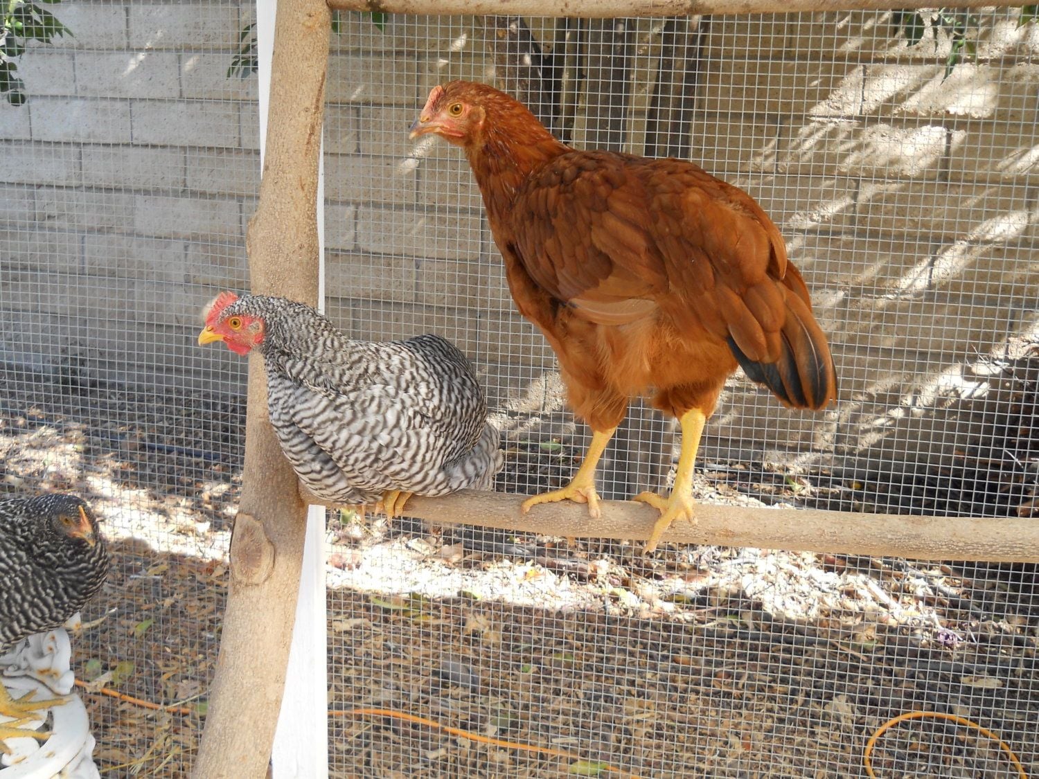 Sunny, Buff Orpington pullet, with Peep, Rhode Island Red pullet in background.