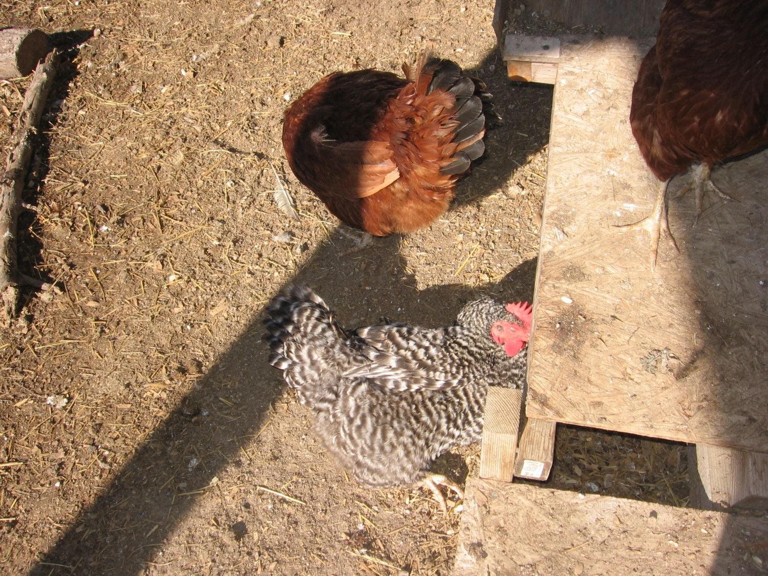 Speckles, Barred Rock cockerel, and Peep.