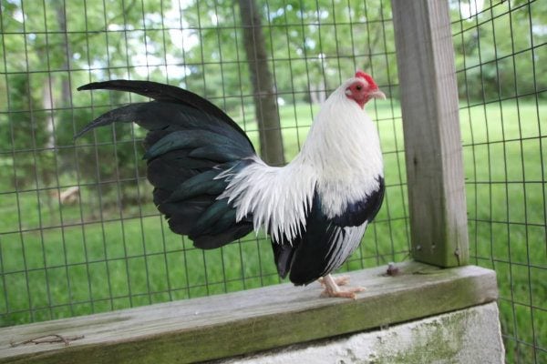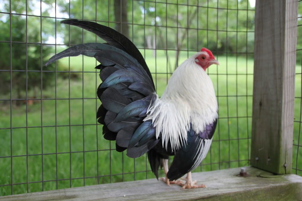 Name: Rocky Breed: Old English Game Bantam Variety: Silver Duckwing Age: 6 months Name: Comet Breed: Aseel Crossbreed Variety: Mottled? Age: 6 months