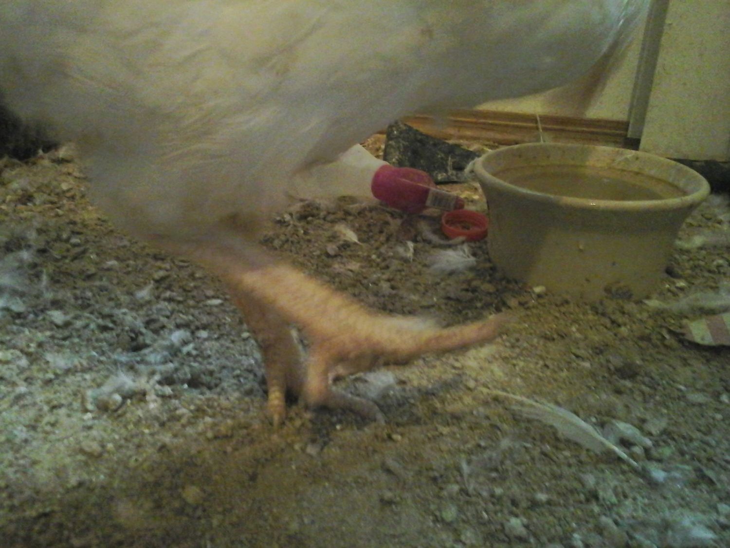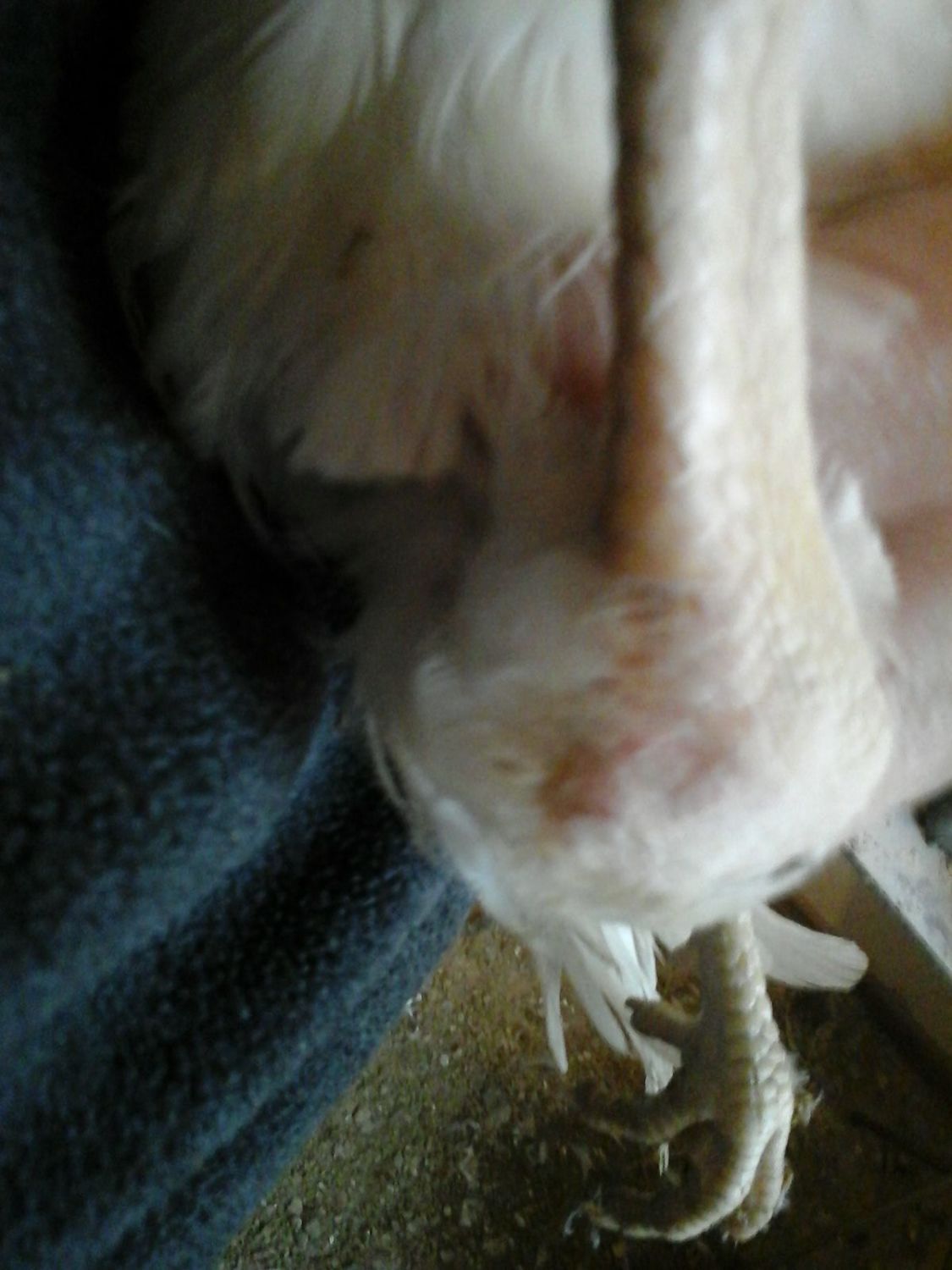 See where I have circled the knee(?)? Prince is a Cornish Cross mix rooster who has a bad knee. He is not heavy like his mother but he is heavier than his father a Welsummer rooster. I am thinking it might be dislocated and I wonder if there is anything/anyway that I can correct this myself? It is swollen and warm to the touch. It has been this way for a while but we have no vets to treat birds around here and he has been able to get around hopping and using it for balance. Something has changed and his foot is turning inward, his toes/talons are normal, not curling or anything but he is not using it as much as he was.