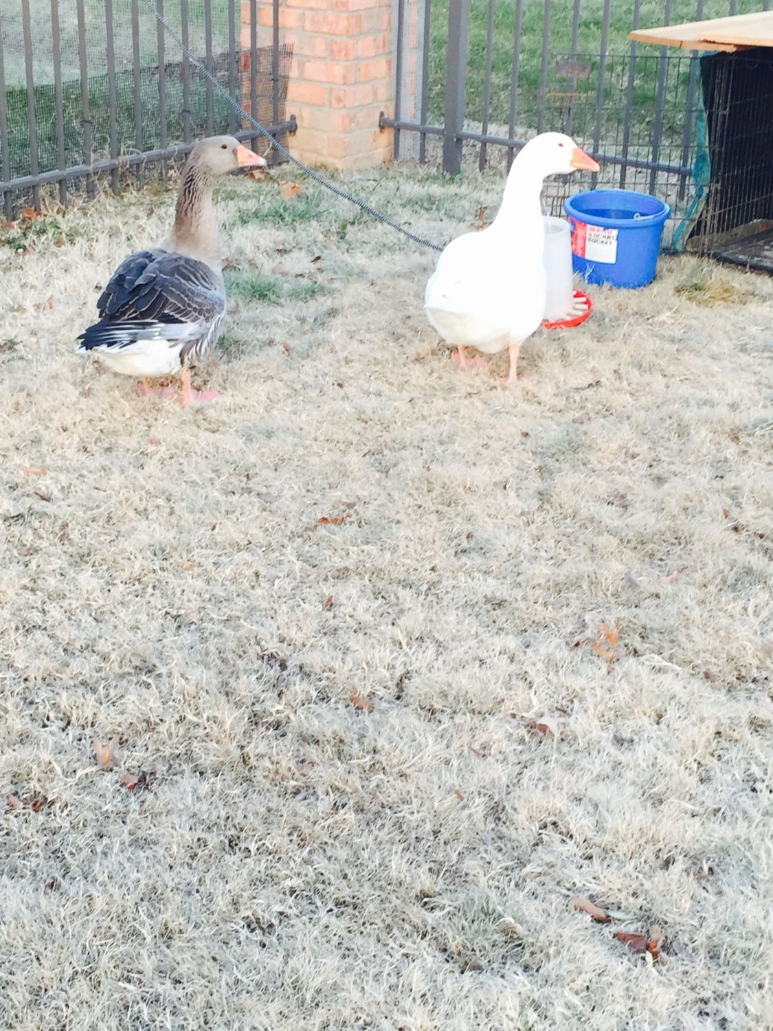 Yesterday morning went out to check and make sure everyone had plenty of food before leaving for church when i hear a duck quacking like it's being attacked by a predator. [believe me when I say Muscovy's don't quack unless grabbed by someone] well out from in front of the goose house comes one of my ducks with Babe latched on to her wing not letting go for nothing, all I had in my hand was a towel so I threw it and at least that got Babe to let go.. Grrr why are they so mean? They just go around looking for someone to grab or pick on.