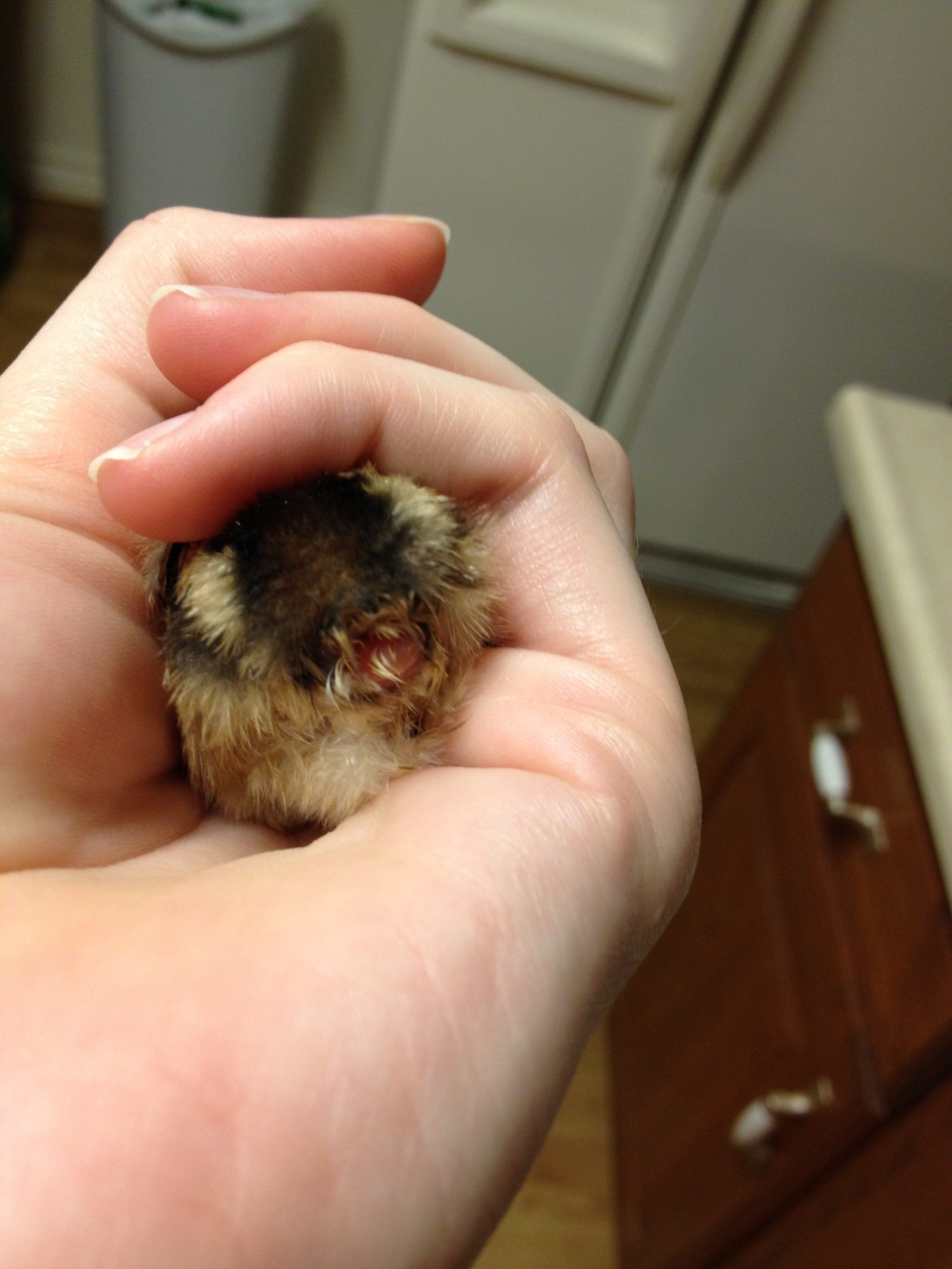 The DH surprised me and brought home a new chick tonight to replace the one we lost last week