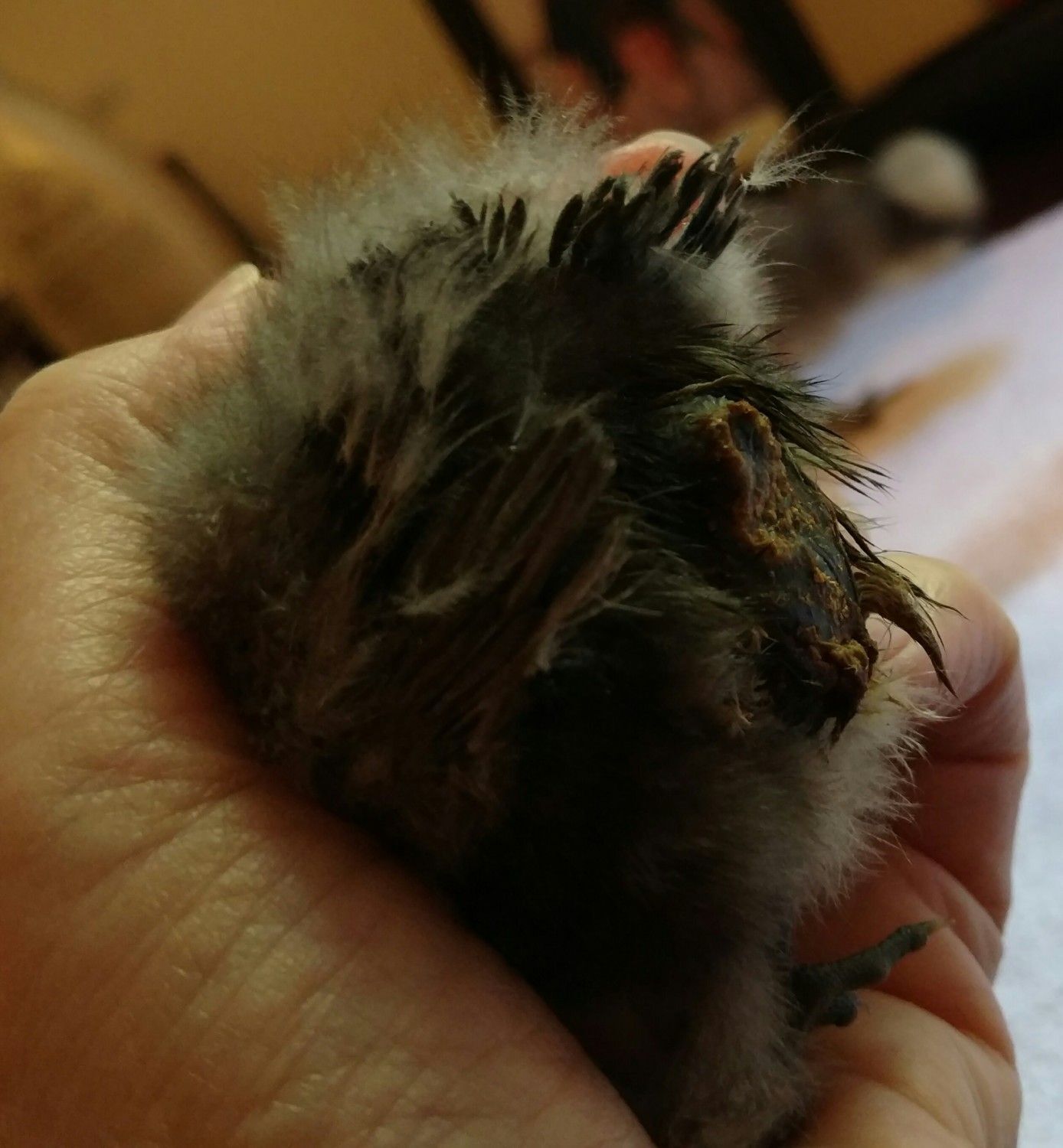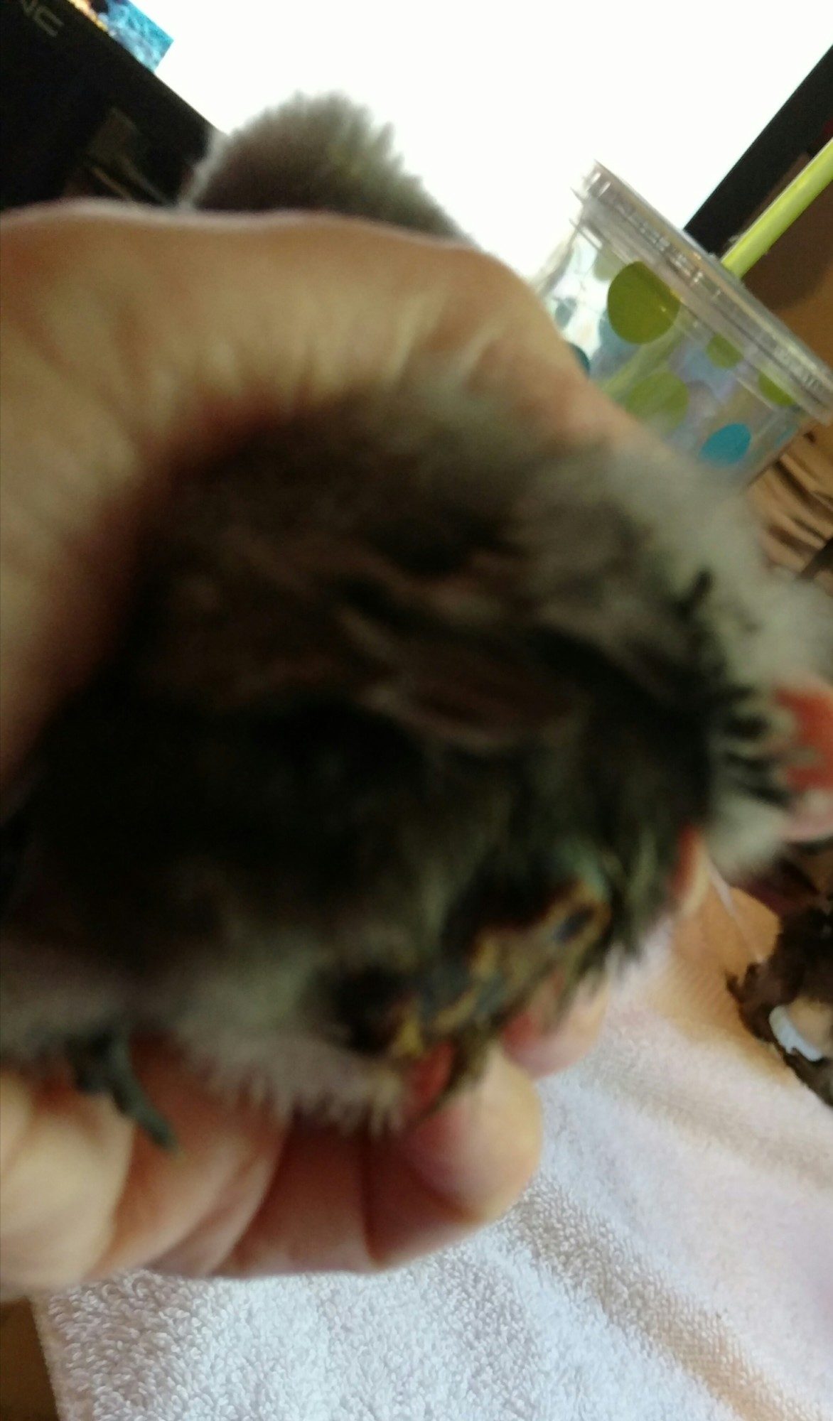 Eating and drinking just fine, checked it's crop last night and this morning. Last night was nice and full and emptied out this morning. Washing it off with warm water, put a little vaseline on the skin to keep it from sticking.