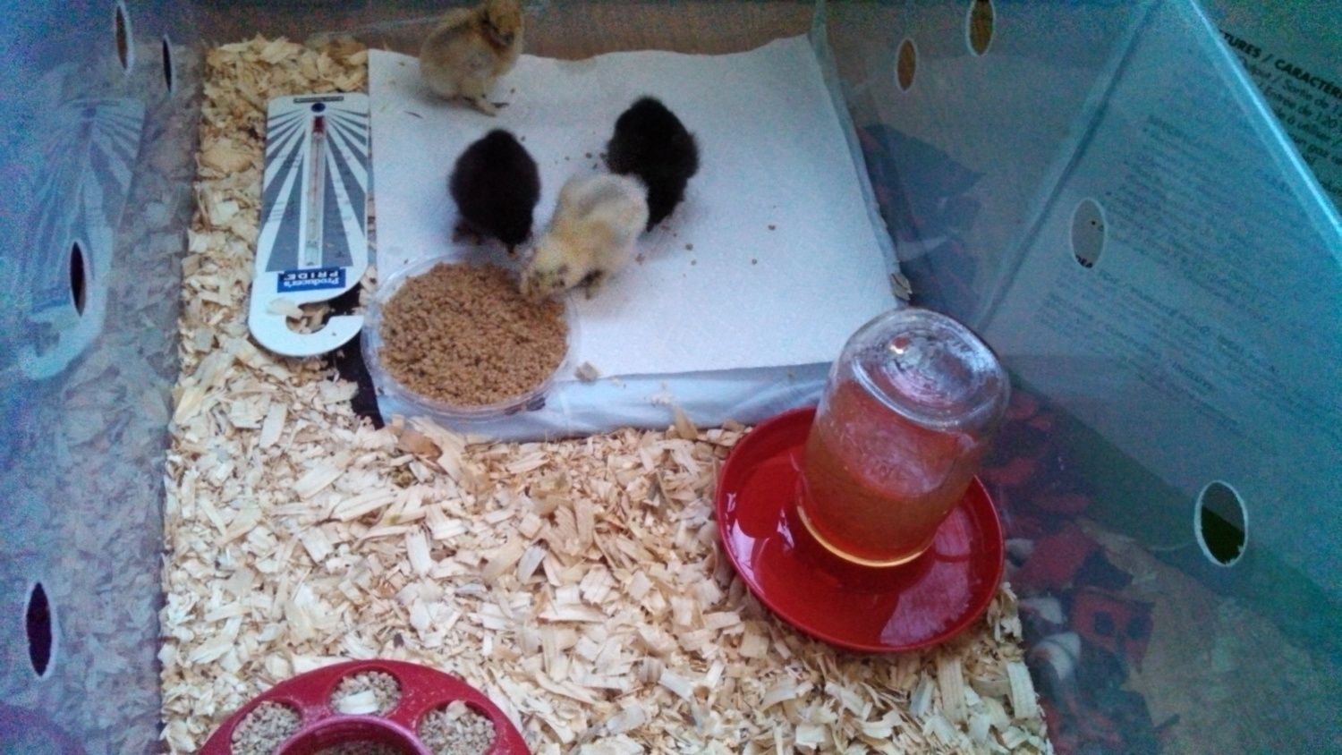 To transition heated chicks to a colder ambient temp (room in house to garage),