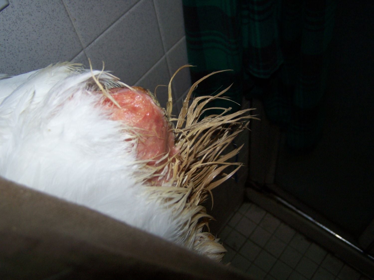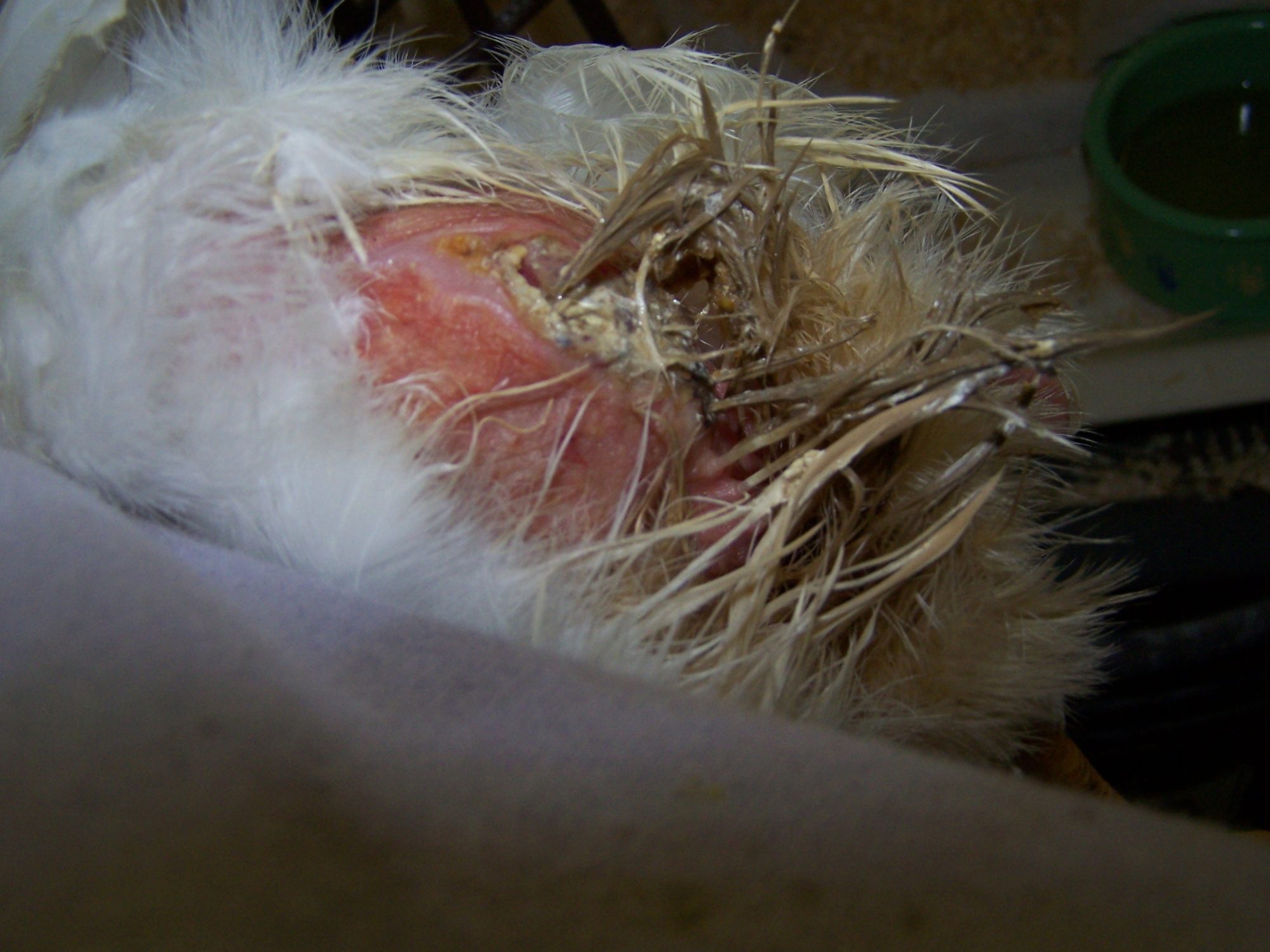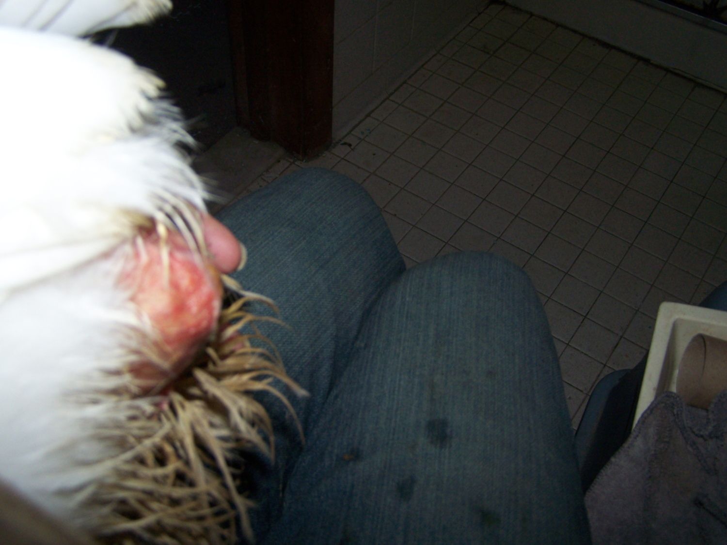 I saw this pullet Monday about 2 1/2 months old w/poopy butt and told them to keep her dry for flies. Next thing you know they hand her to me and say take her. Anyone have any ideas on how to unclog the vent? I have a meeting so I can't type more now. I have been soaking her each night.