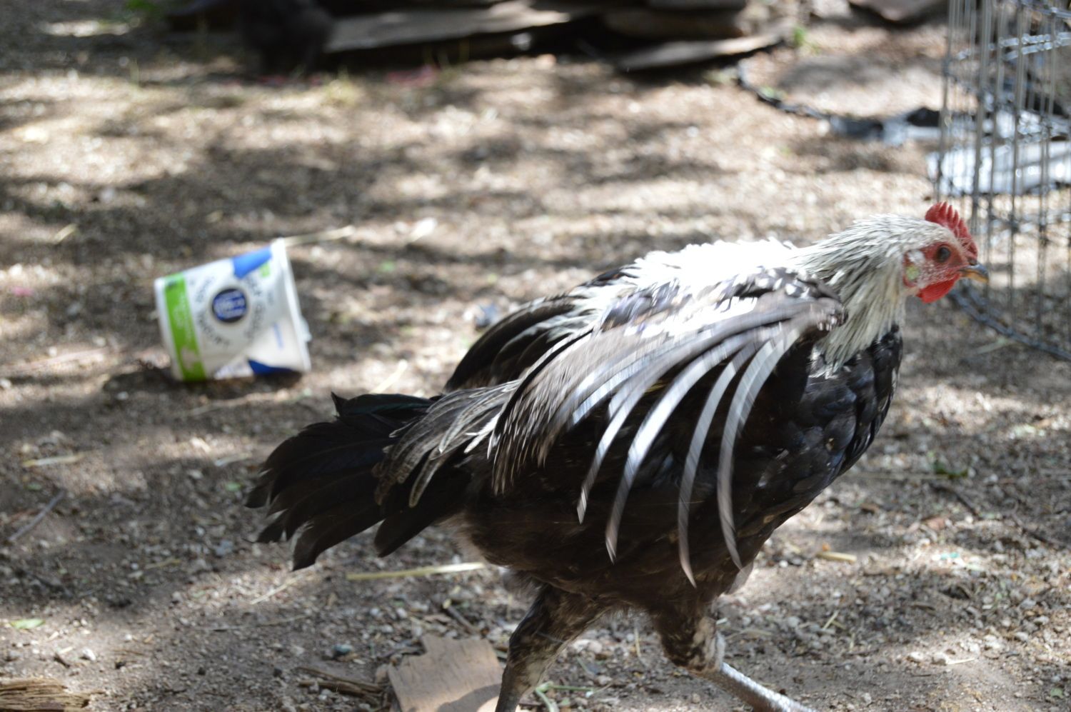 Brown red Modern Game bantam cockerel, Watcher (for his self- imposed, life-long sentry duty). Six months old August 2.